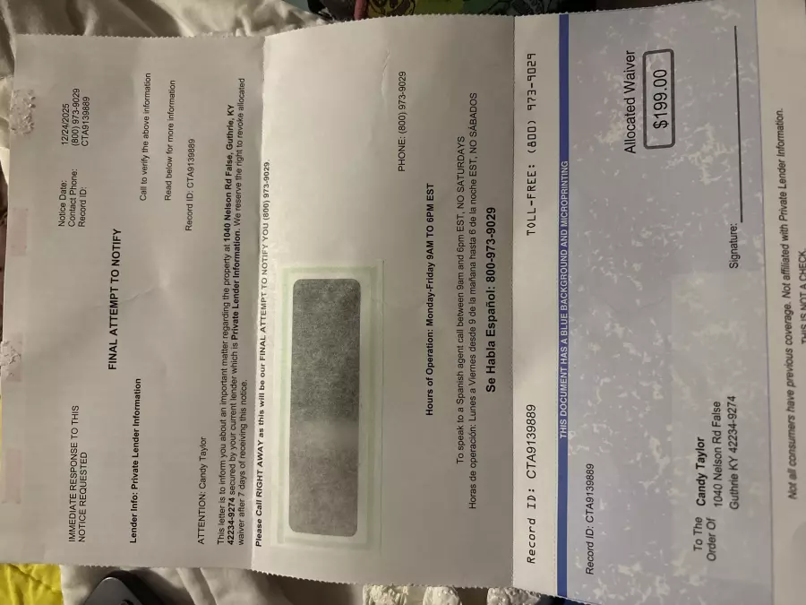 Please call immediately as this will be our final attempt to notify you 1-800-973-9029