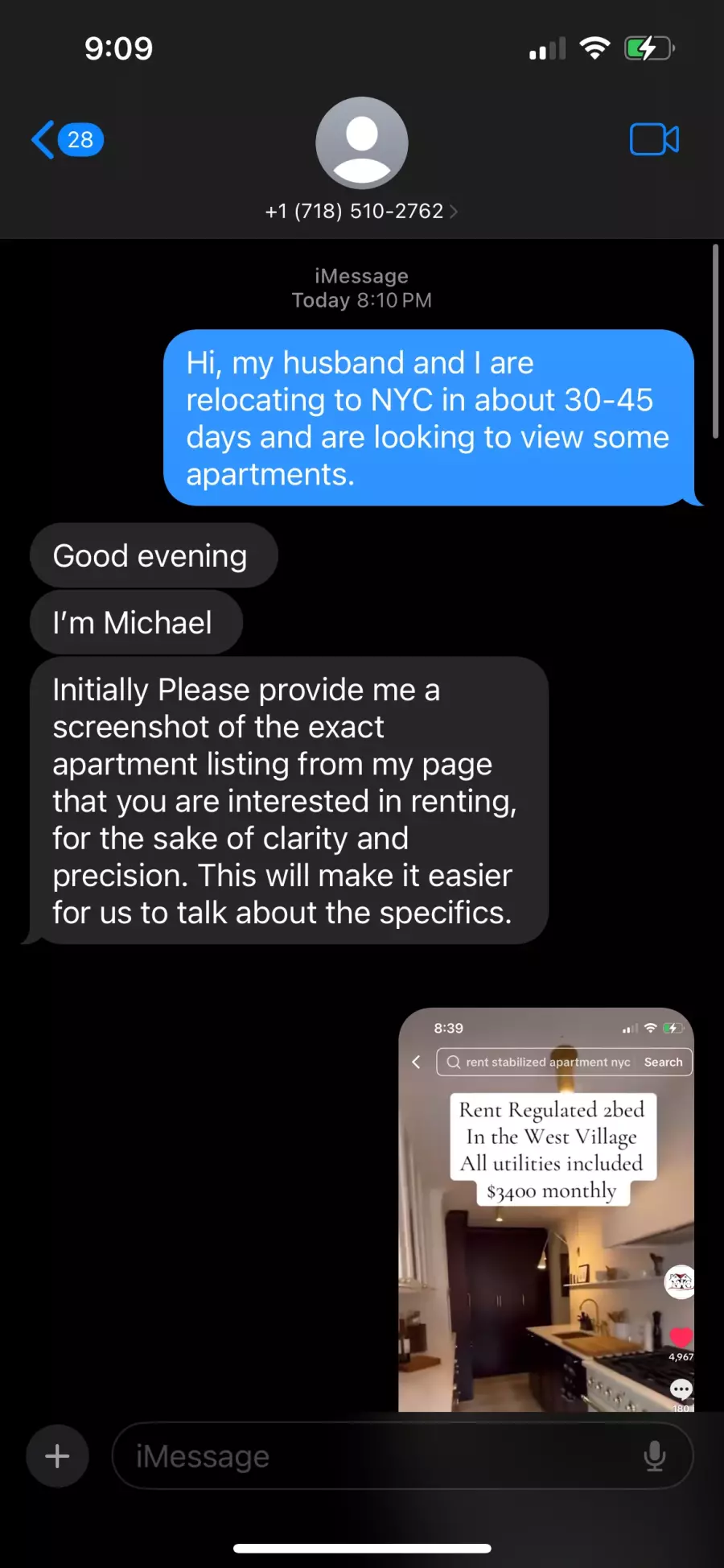 sketchy and unlike any renter form I’ve ever encountered. I texted the real Michael, and he told me that he was not who I was texting. Such a huge scam, do not contact!