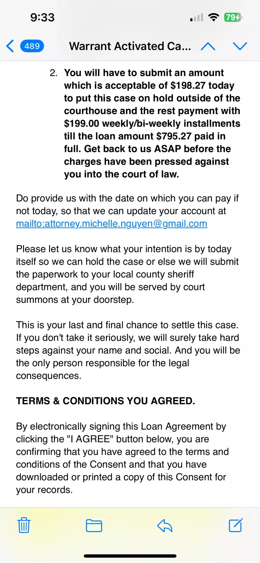 The email also states there is a next step which would be amounting to almost $3,000 and gives me two options for payments.