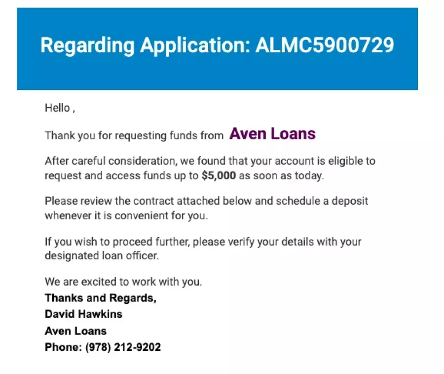 If you know any contact information for Aven Loans, help other victims by adding it!