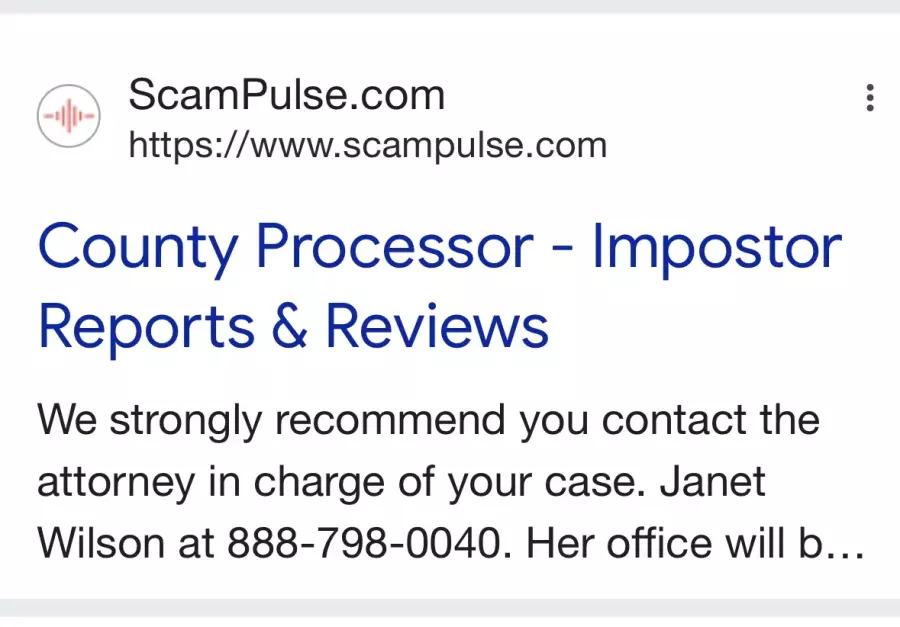 If you know any contact information for County Processor - Impostor, help other victims by adding it!