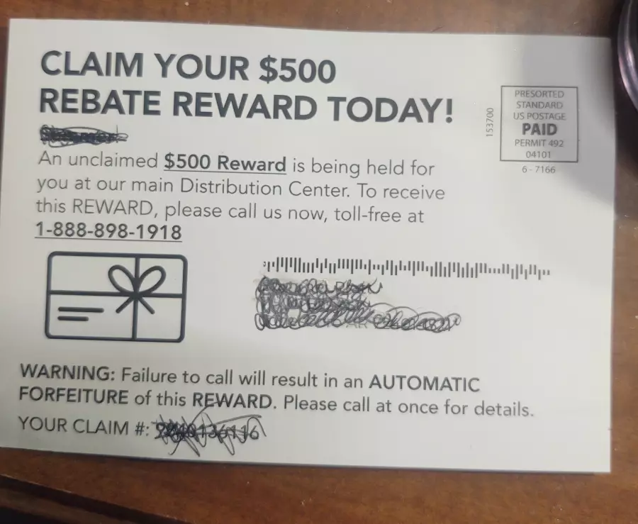 WARNING: Failure to call will result in an AUTOMATIC FORFEITURE of this REWARD. Please call at once for details.