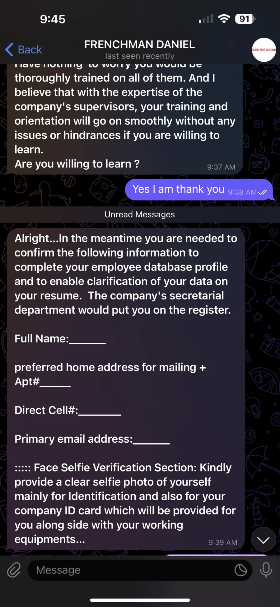 DO CONFIRM ACCEPTANCE OF THIS POSITION BY PROVIDING THE BELOW DETAILS. DECLINE THE OFFER BY NOT REPLYING, OR SAYING NO.