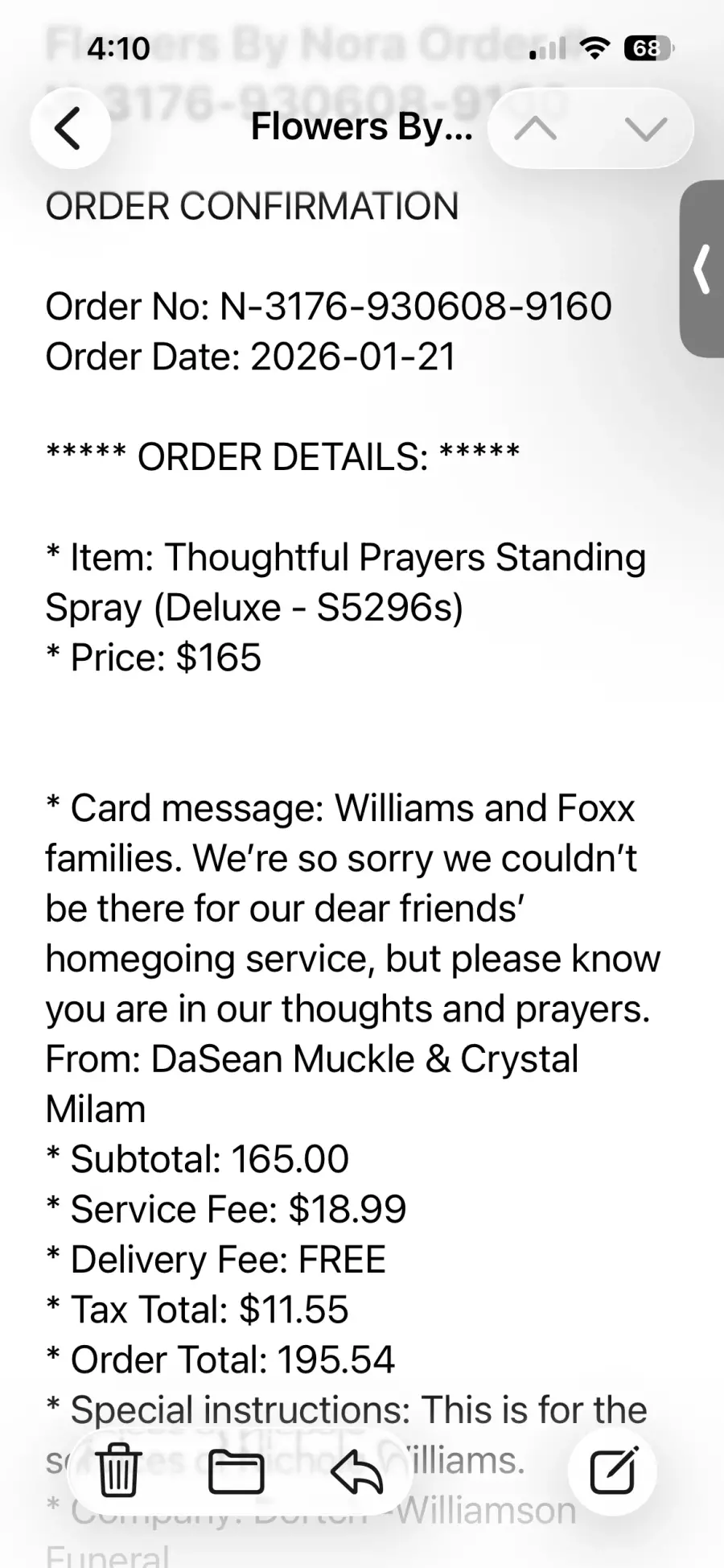 Ordered flowers online that arrived dead and wilted for a funeral