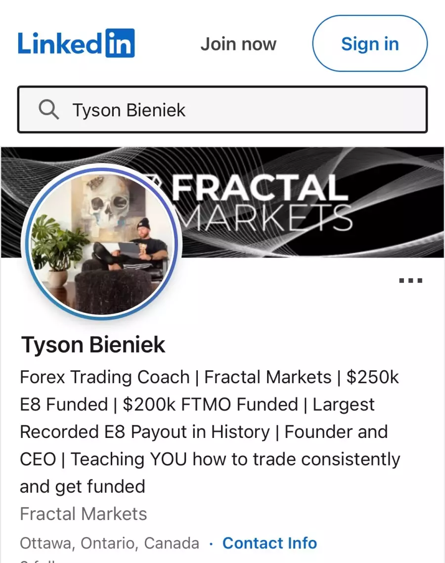 Tyson Bieniek, who is publicly listed as the CEO of Fractal Markets on LinkedIn, has been associated with this platform and its operations. His online presence continues to promote investment and trading services under various brand names. Reviews from alleged victims describe a consistent pattern of: