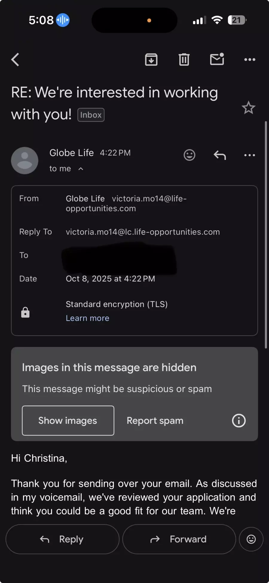 Globe Life employment offer Reports & Reviews (3)