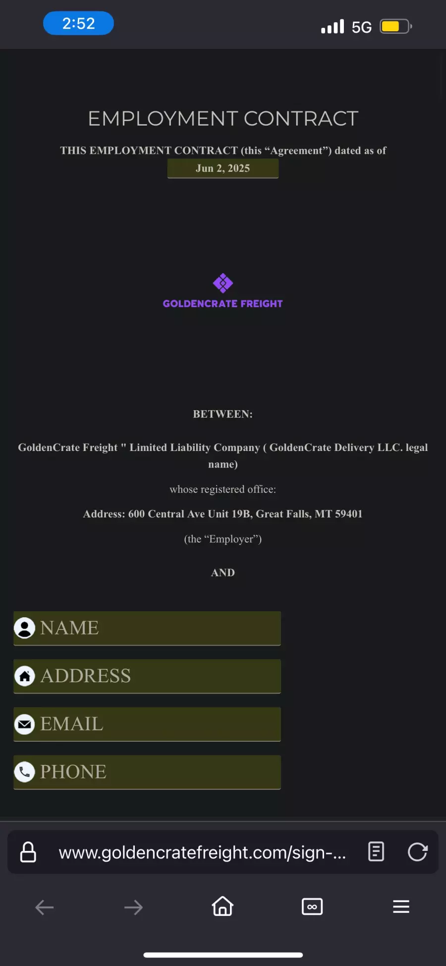Scam company “GoldenCrate freight”