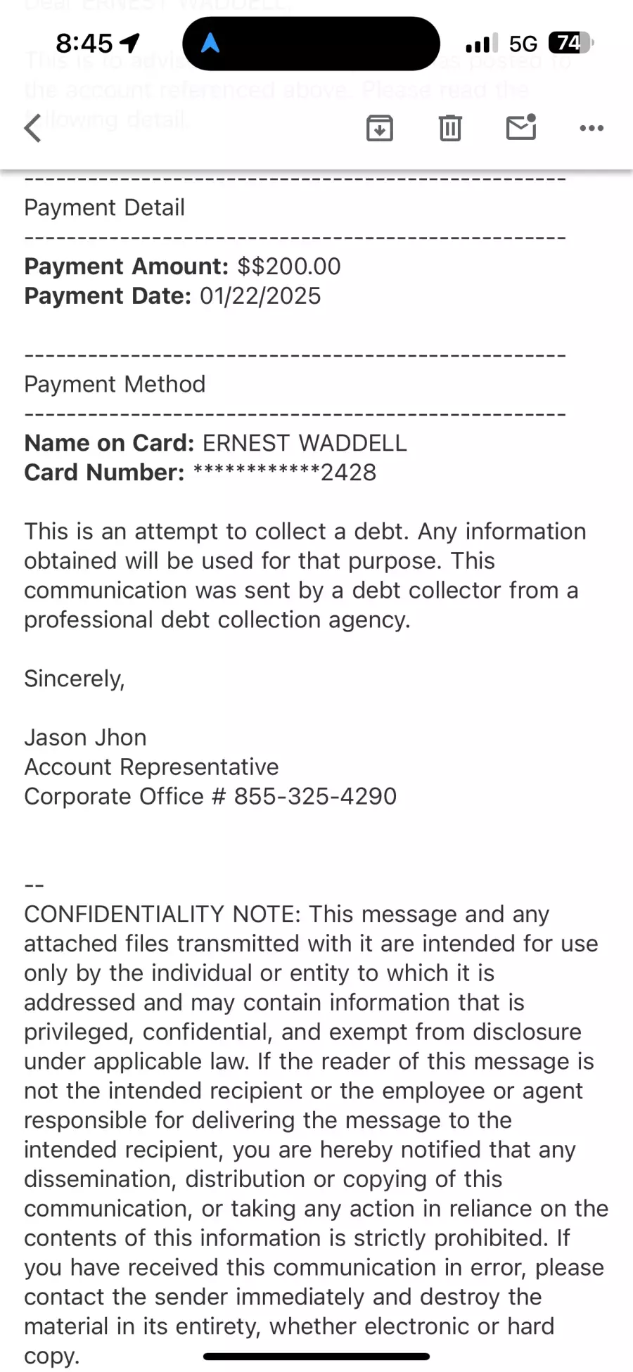This is an attempt to collect a debt. Any information obtained will be used for that purpose. This communication was sent by a debt collector from a professional debt collection agency.