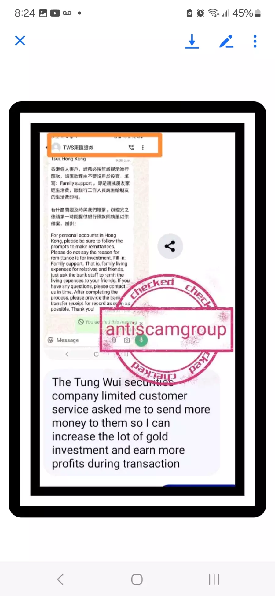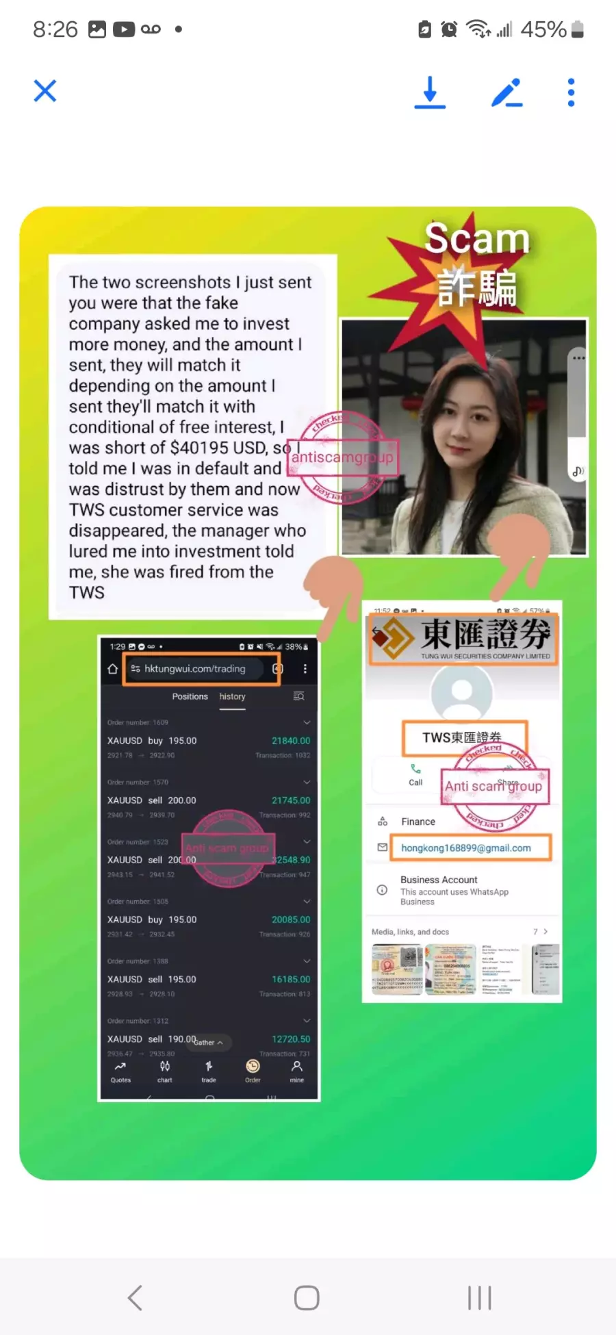 Please do not fall into Tung Wui securities company limited, it's faked, it's a scam company!