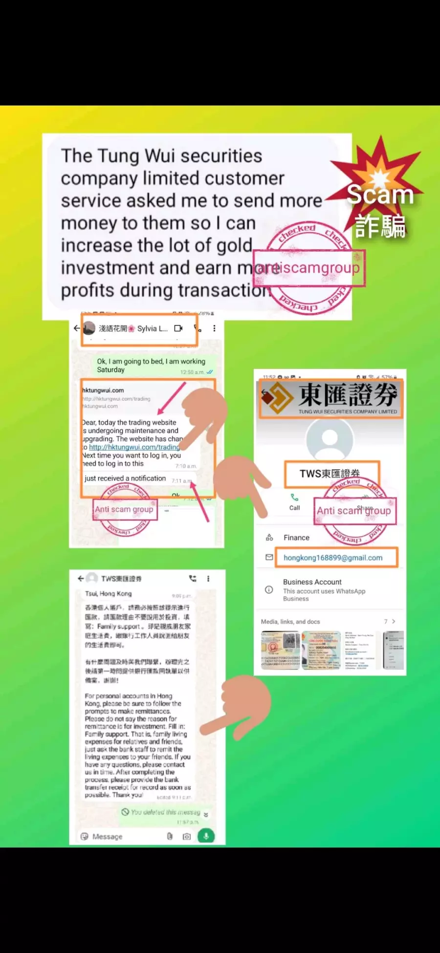 If you know any contact information for Investment - Tung Wui securities company limited, help other victims by adding it!