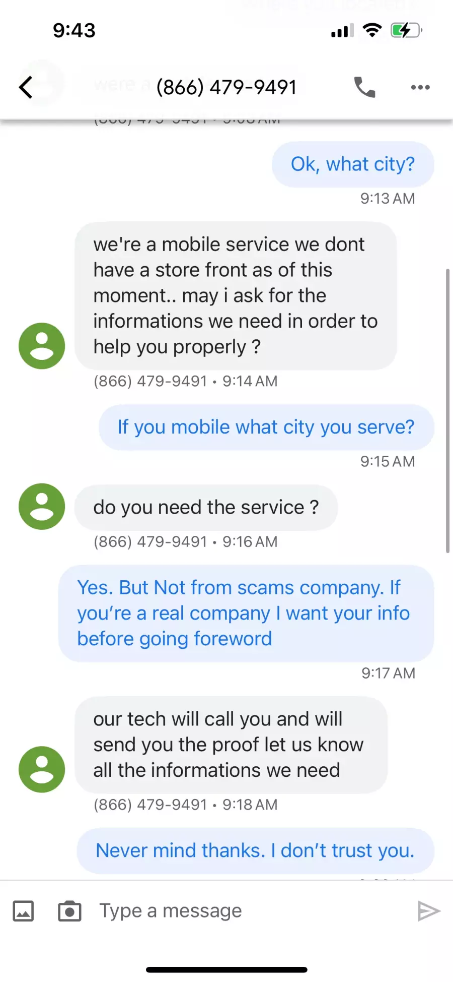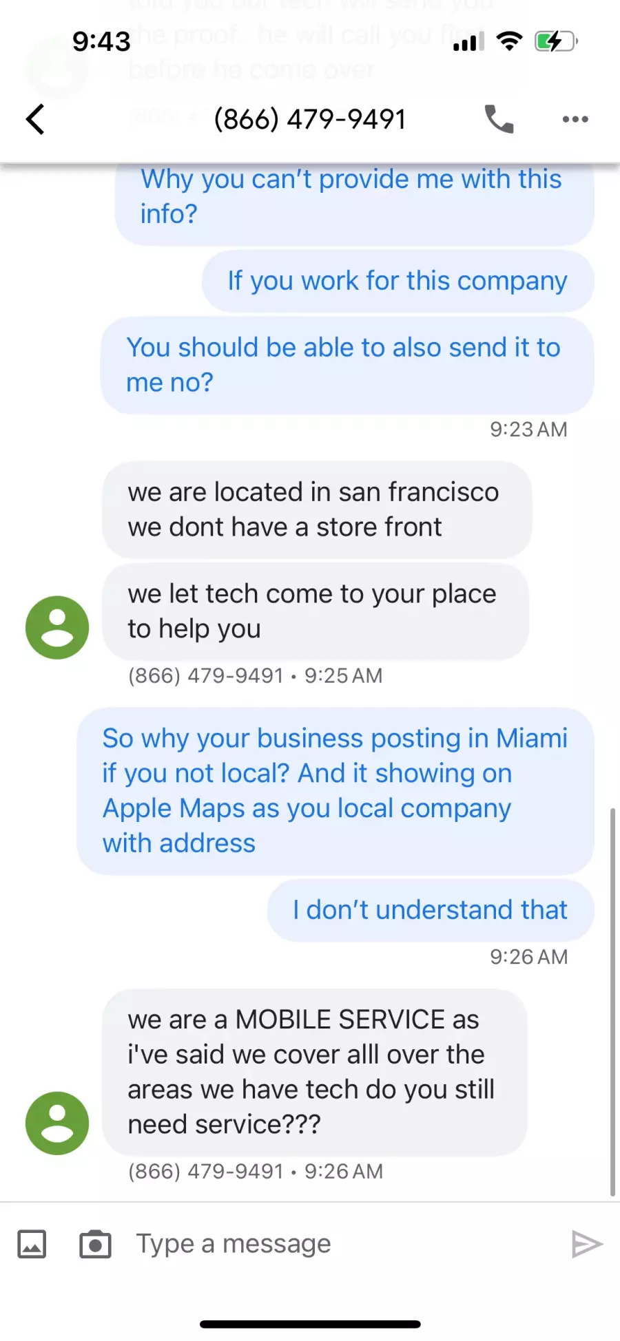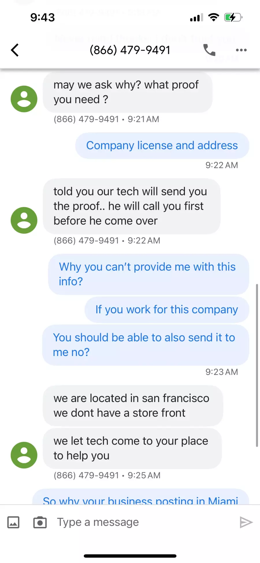 “Locksmith” messaged asking for more money.