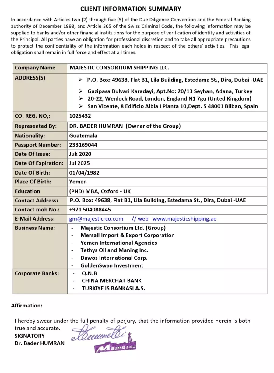 Last year he defrauded a client of over $800,000 by collecting advance payment to deliver a ship for carriage of Granular Sulphur from Carribeans to Richards bay South Africa. He also defrauded another UAE based oil traders of over $680,000 for a non existent VLCC both both in collaboration with Zimar Inc Canada. Zimar is a one man scam outfit owned by a Syrian. Zimar has a website. Also lurking in the background is Nissan the Turkish lawyer that handles finances. QNB Bank Turkey confirmed that their account/activities is under investigation. Have correspondence with them. He also defrauded a Nigerian Charterer of over $600,000 for delivery of Notore fertilizer from Nigeria to SENEGAL. So many other complaints against him. He is owning me over $70,000 as commission of which he sent fake payment slip. Have ample evidence to support forgoing. He has applied for 2nd Guatemala citizenship for he and his wife to enable him travel freely. At present he is based in Dubai, changing hotels on weekly basis.