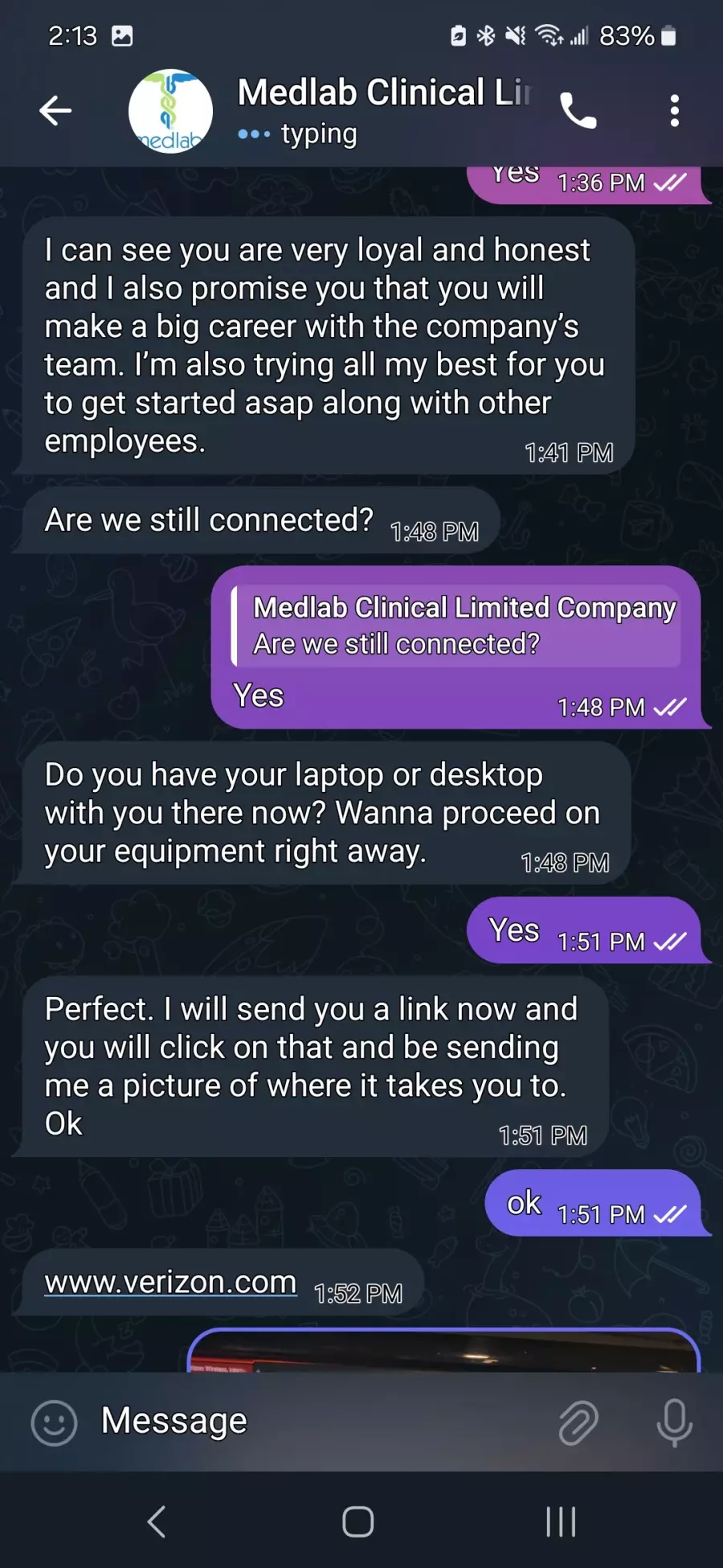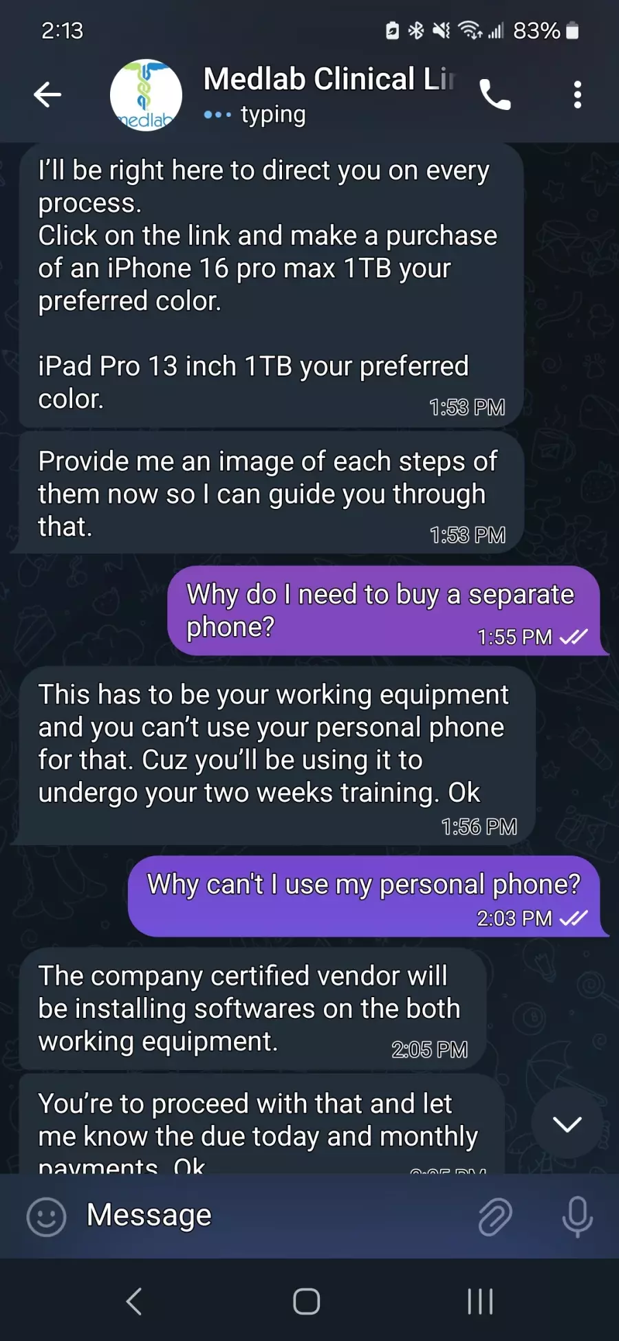 He said in order to start orientation and training I would need to buy materials to get started working from home. The materials were Mac Book Pro, new Apple Iphone 12, laser printer and a fax machine. The company would provide the funds to purchase, but NEVER answered me ad to how they would be provided! He said I would need to add a new line tou existing phone plan for the company phone. He them sent am offer letter and W4 to me email. Said to fill it out and send back ASAP. I asked for a ph# I could call and talk to a representative, he ignored that question. The whole thing was super odd and got quite sketchy toward the end. Needless to say, I declined the job!