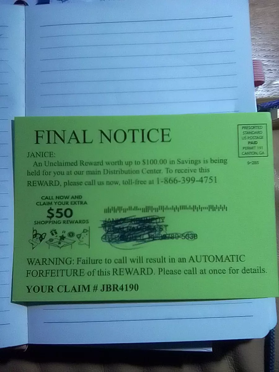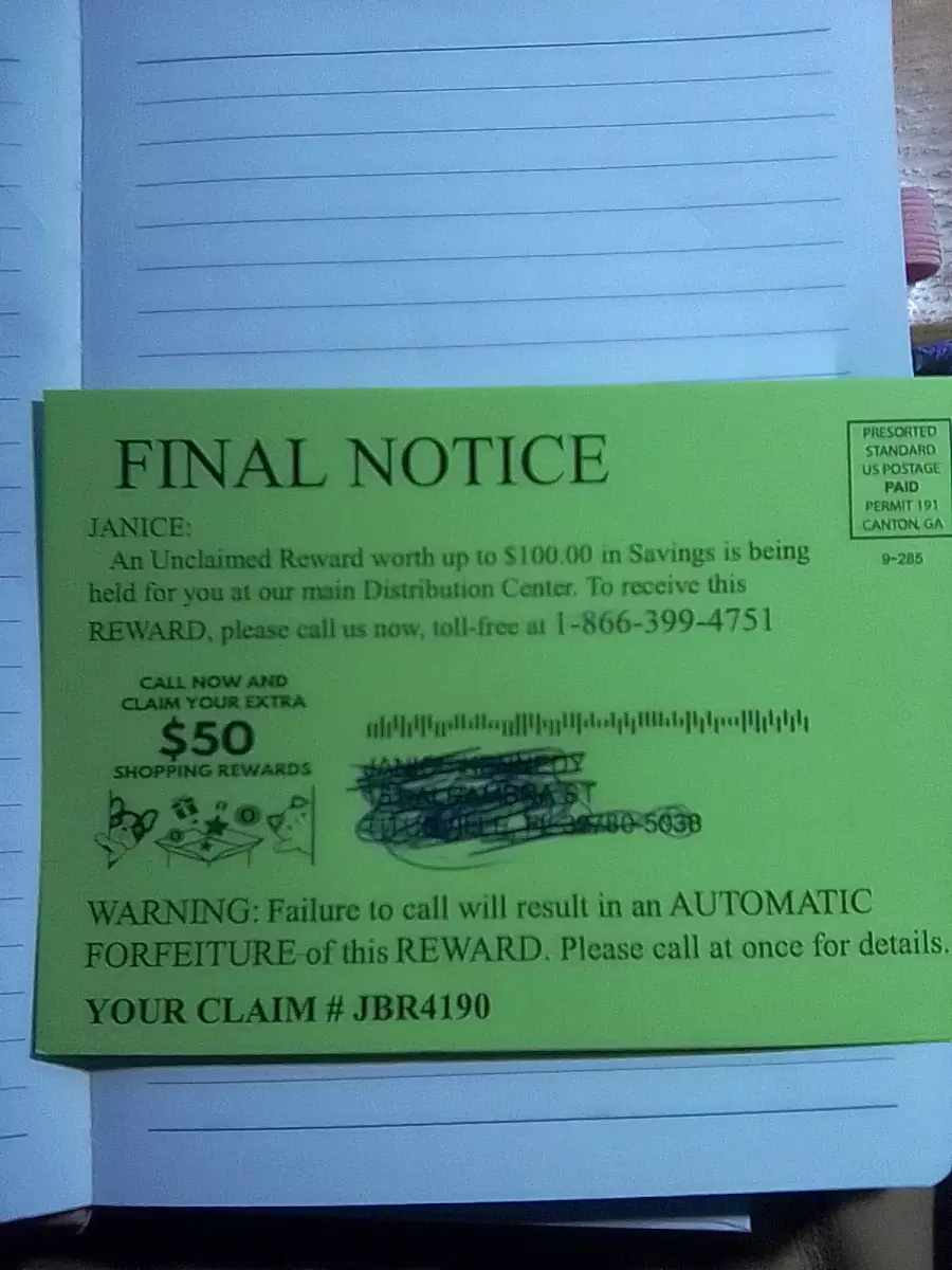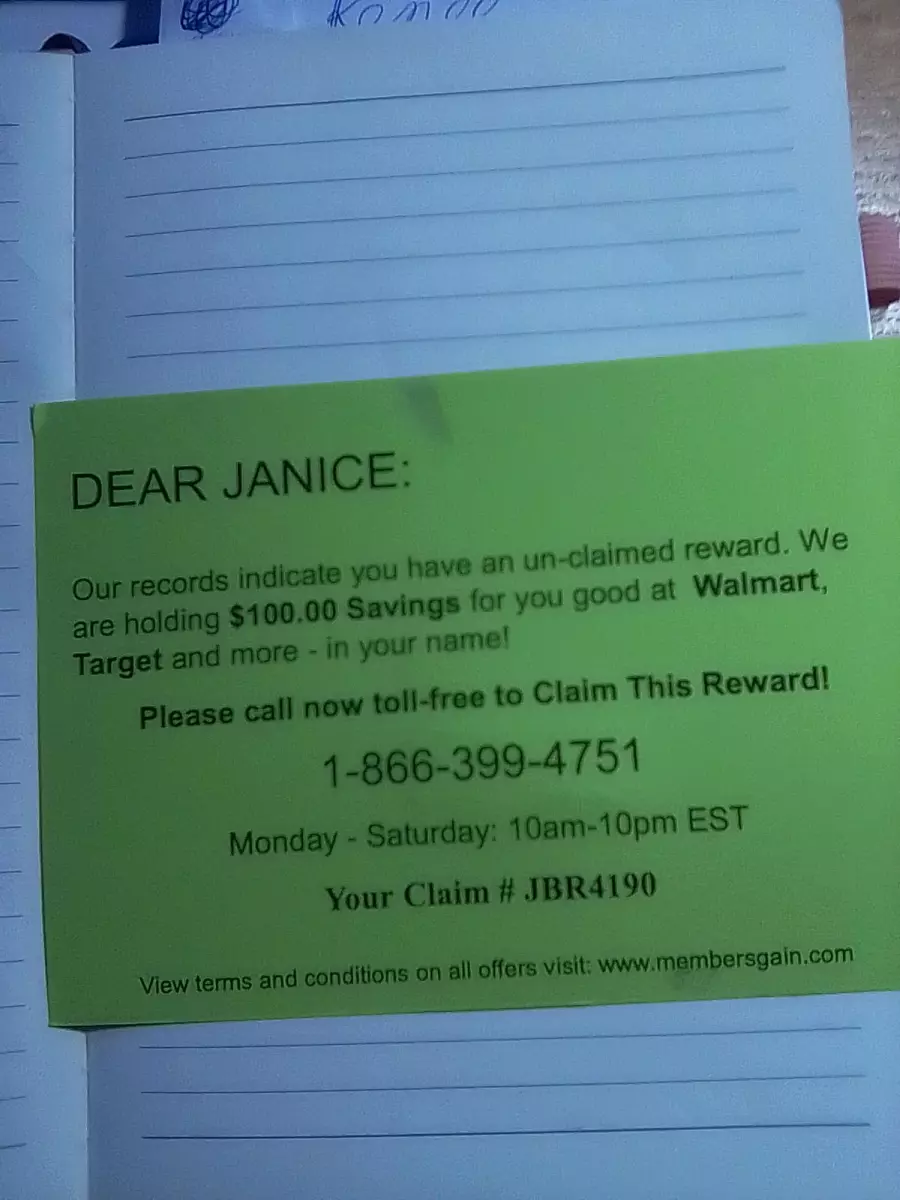 Our records indicate you have an unclaimed reward.we are holding $100.00 savings for you at Walmart, target and more in your name. Please call now toll free to claim this reward