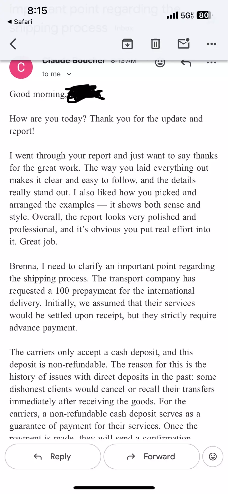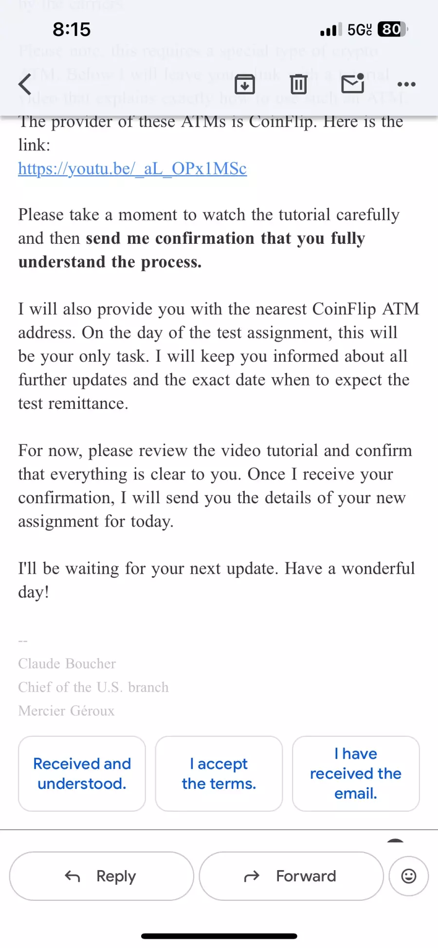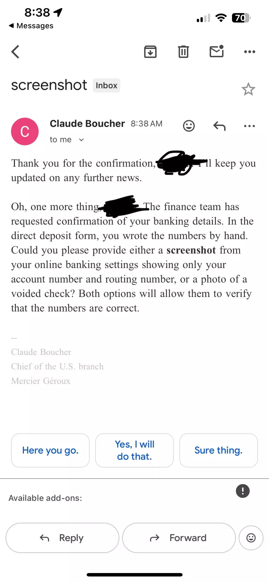 Email is [email protected]. Contact’s name is supposedly Claude Boucher.