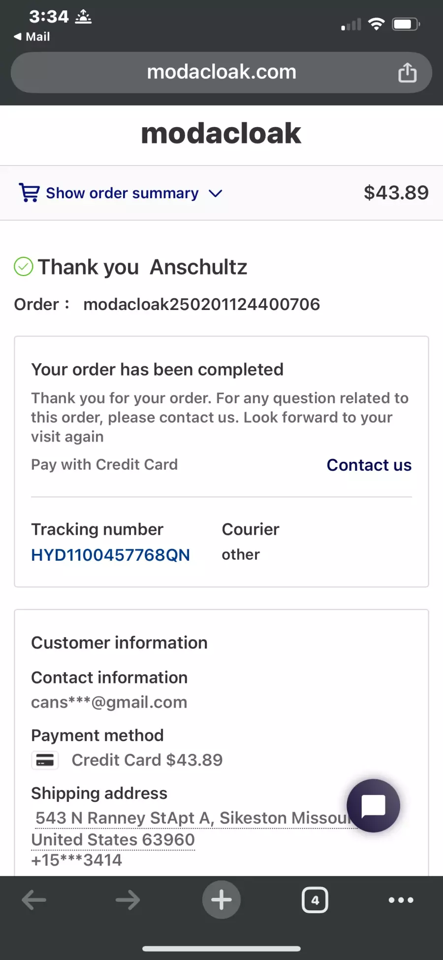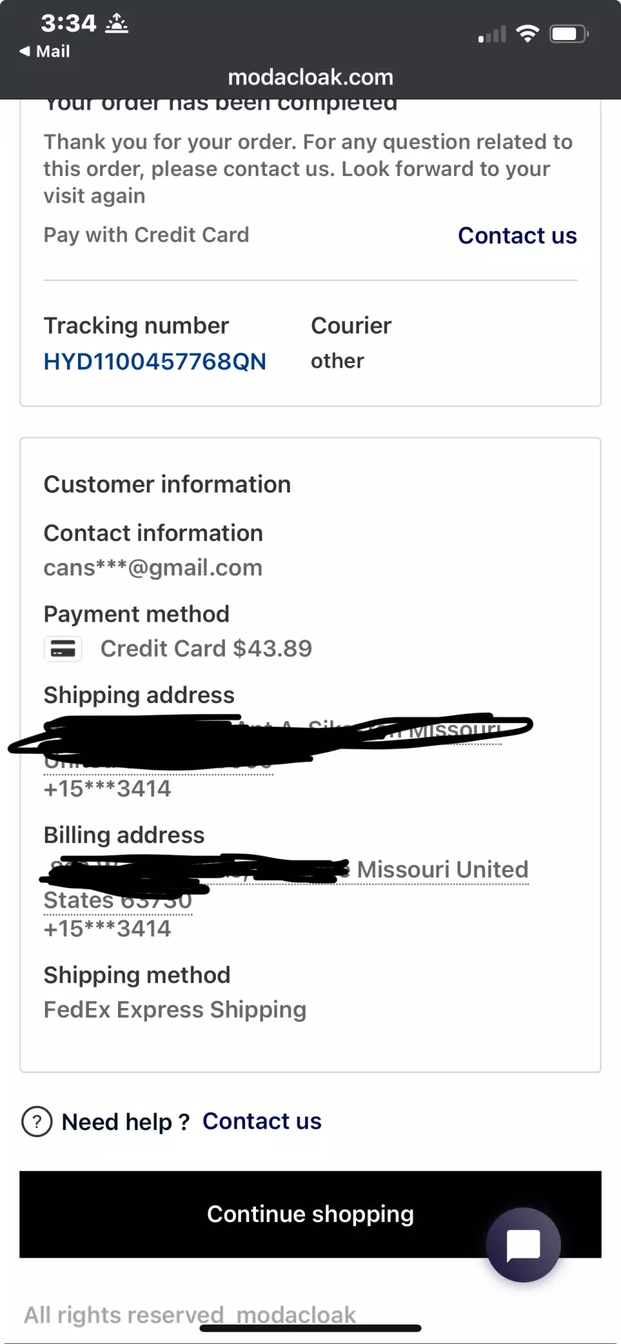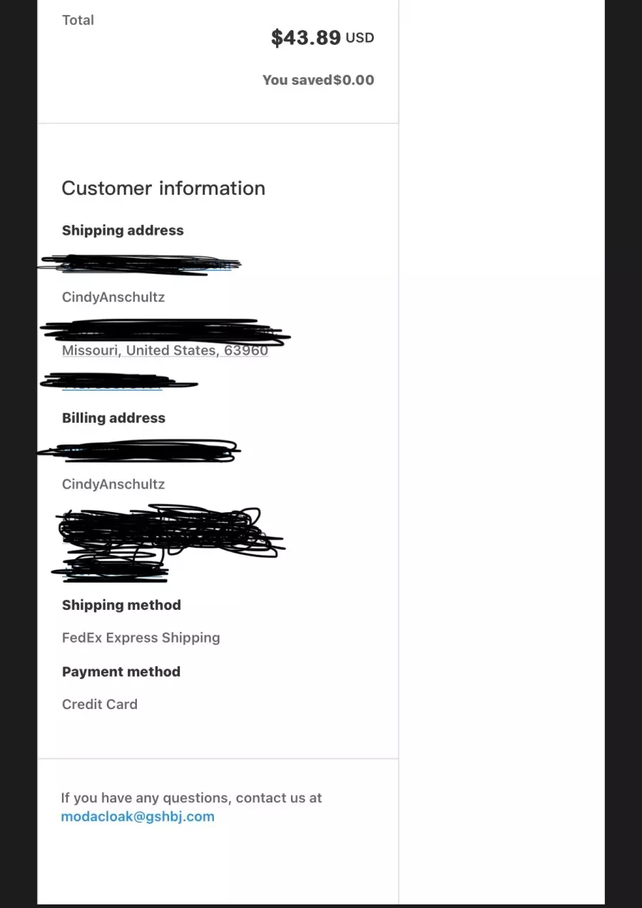 If you know any contact information for Modacloak, help other victims by adding it!