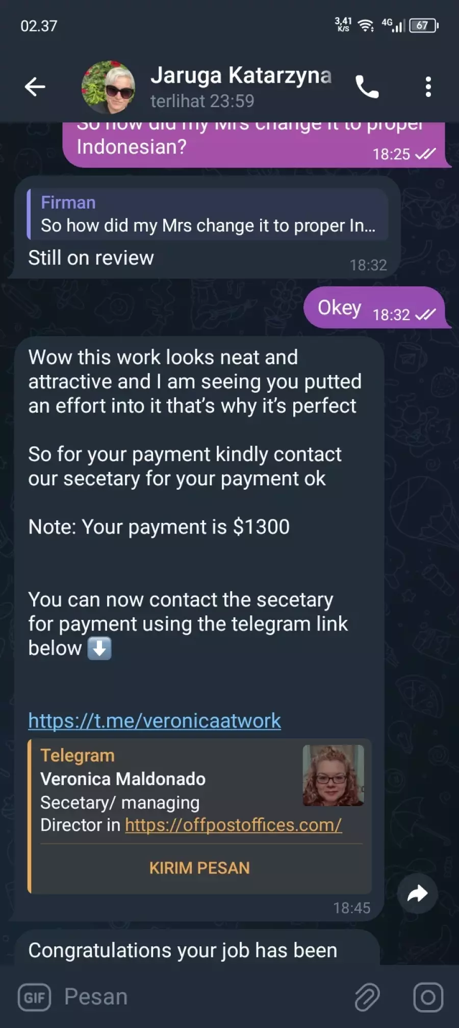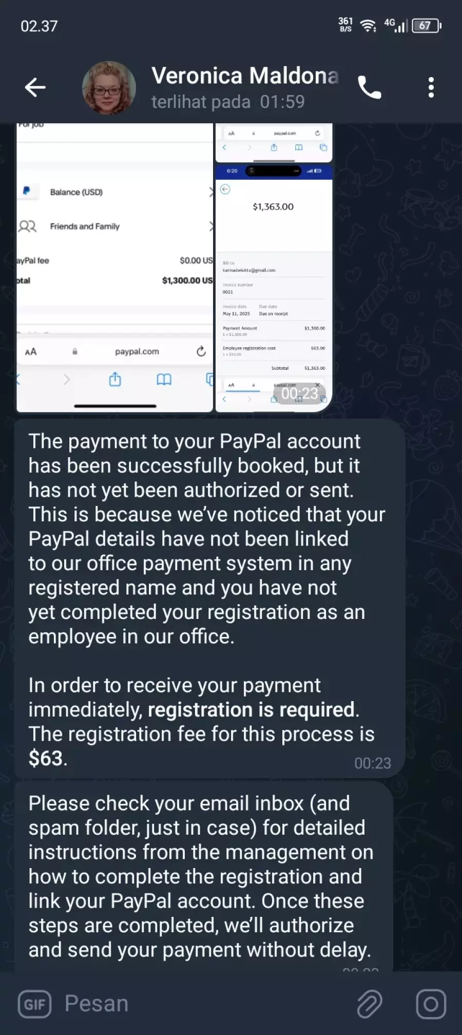 Scam Warning: “Job Payment via PayPal” Fraud by Telegram Users @katarzynadoratao and @veronicaatwork
