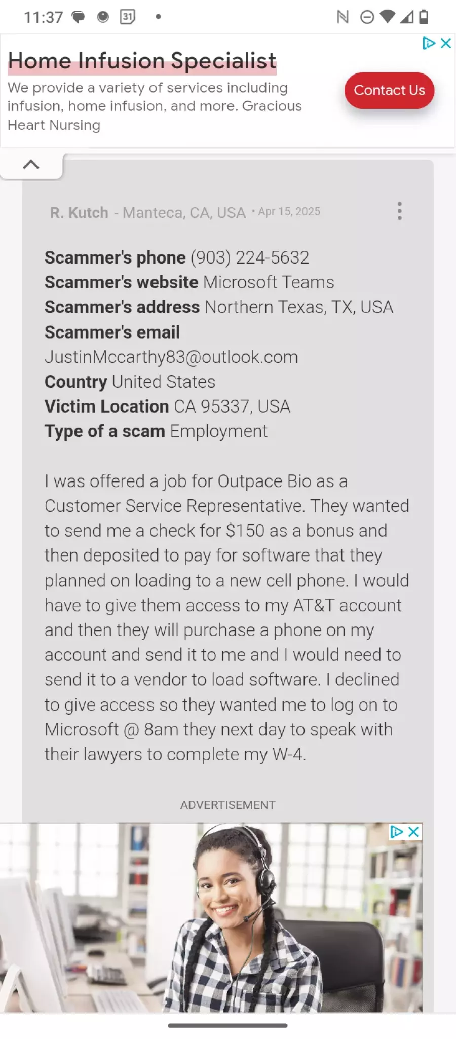 If you know any contact information for Outpace Bio/APOLEXX Technology, help other victims by adding it!