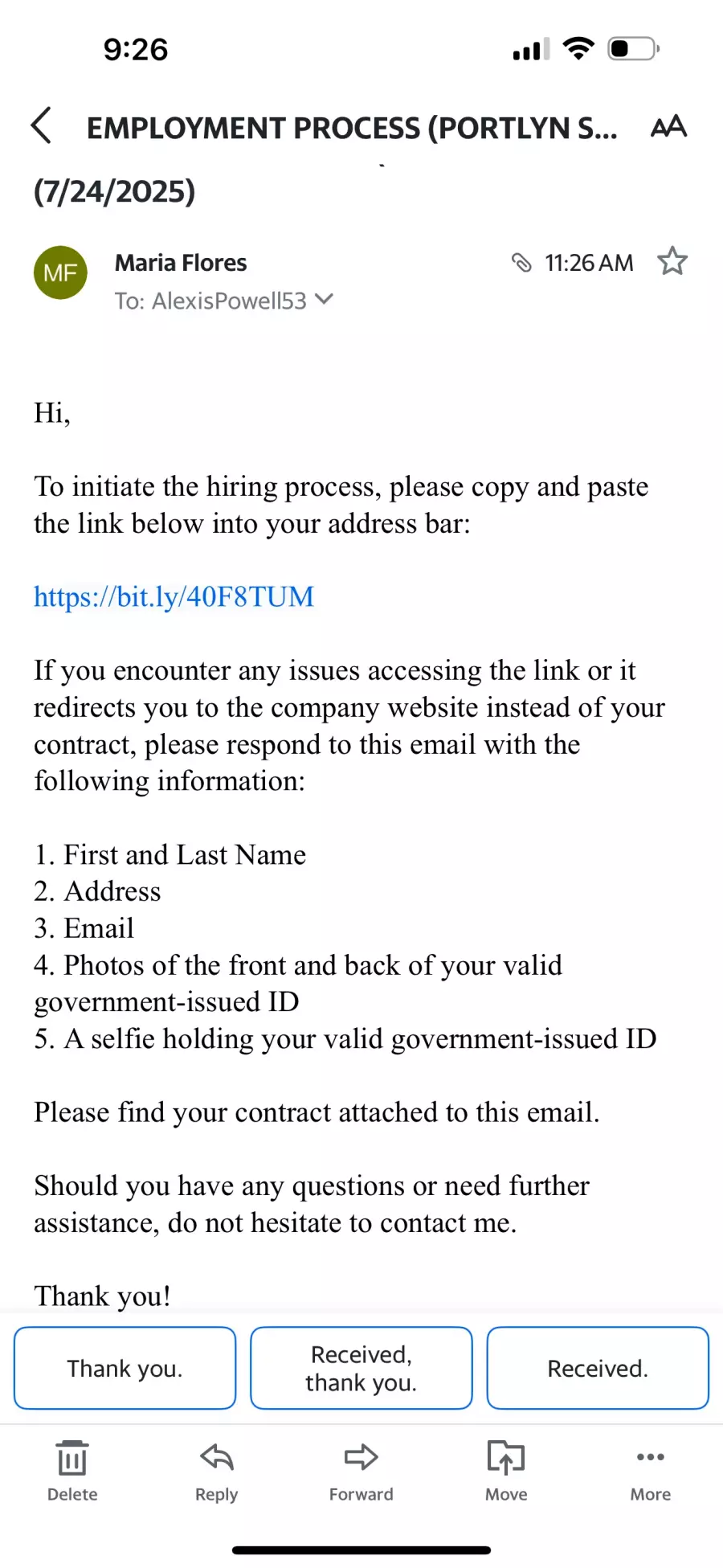 Report Portlyn Employment Scam