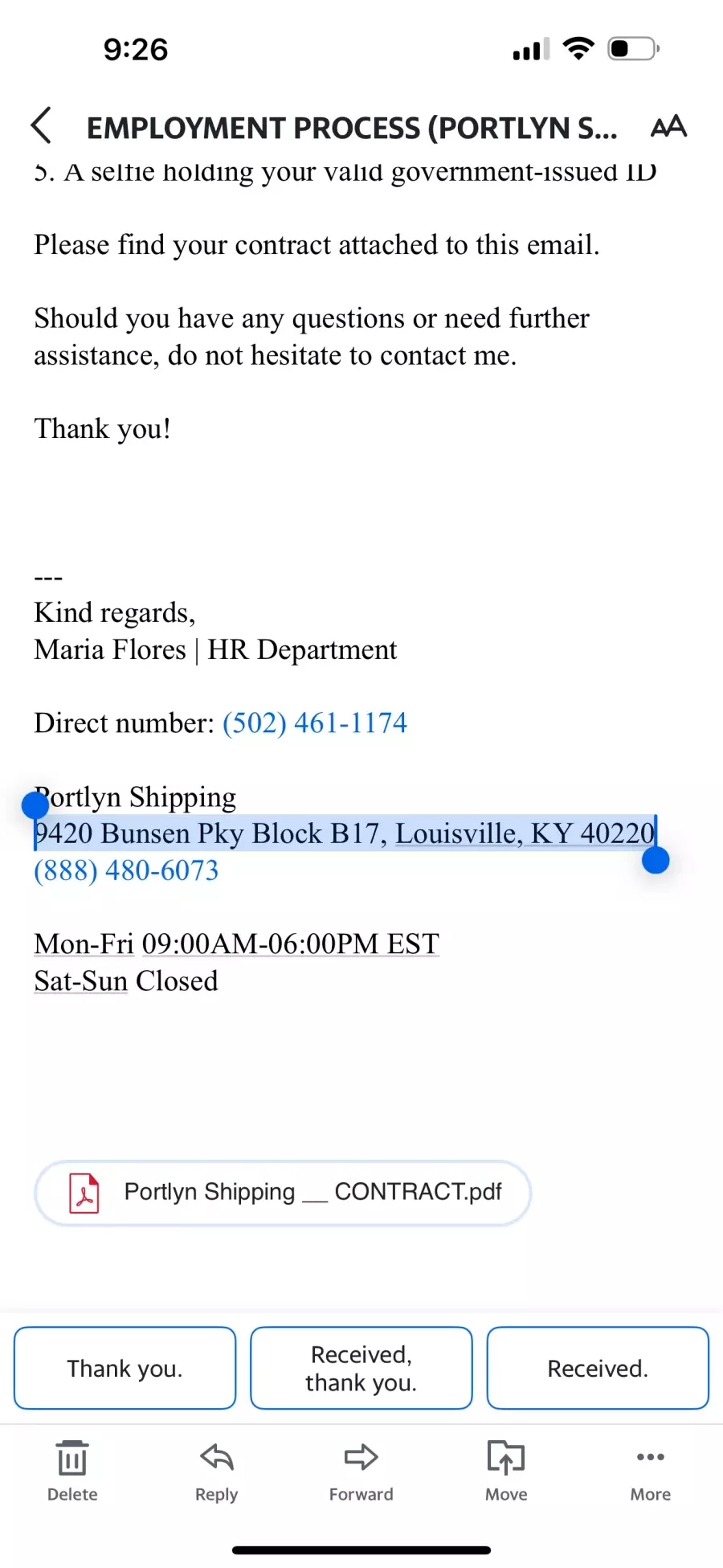 Portlyn Freight Employment Scam Contacts