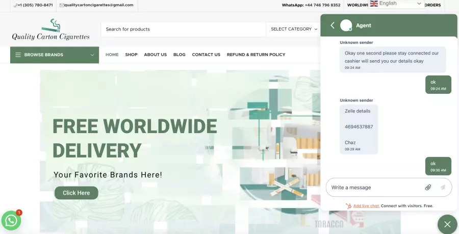If you know any contact information for Qualitycartoncigarettes.com, help other victims by adding it!