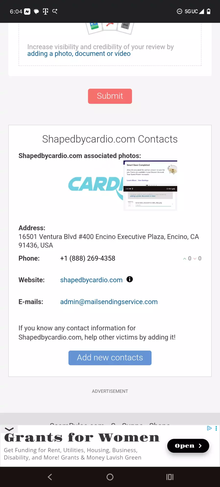 If you know any contact information for Shapedbycardio.com, help other victims by adding it!