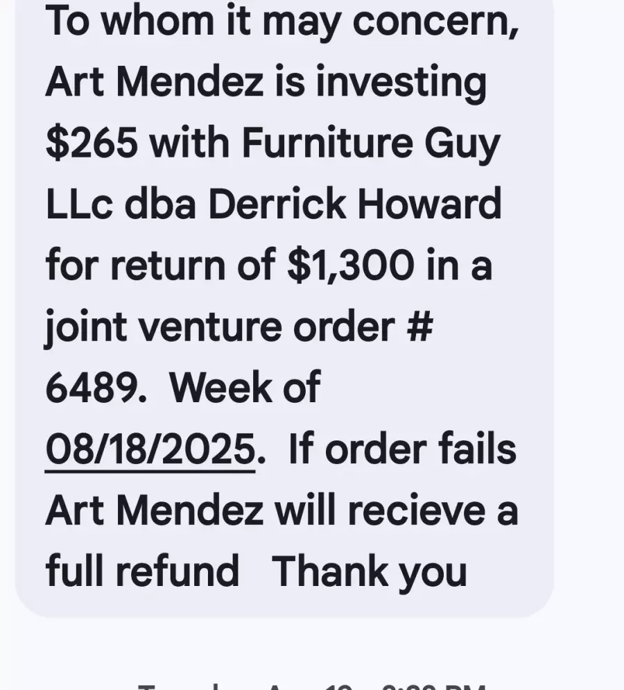 If you know any contact information for The Furniture Guy LLC, help other victims by adding it!