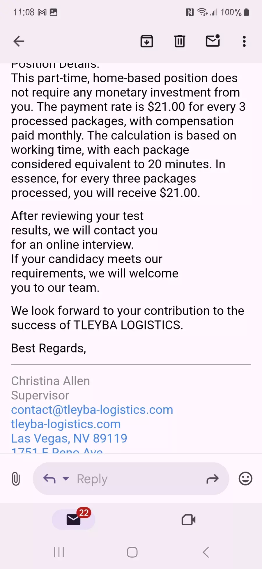 I have been scammed before so of course I looked into this company to see what I was getting myself into. Well they do have two websites, both very similar but not legit. I googled the address that is listed and it comes up as an Apartment Complex In NV. The telephone number is also a google voice number and is a voip number. These people cleary want your personal info so they can probably destroy your life. Do not believe their fake emails!