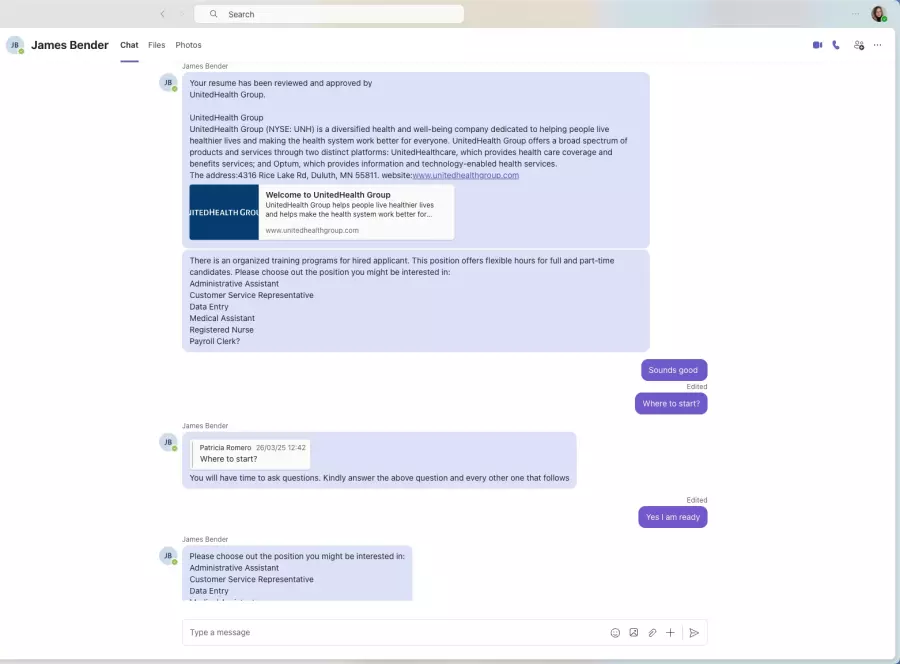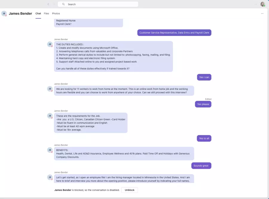 Are you familiar with Teams? If not, You are required to set up an account with Teams at (https://signup.live.com/) Once it is set up, You're to contact the Hiring Manager Officer Mr James Bender via Teams email ([email protected]) using the search box on teams for your comprehensive job briefing and interview.