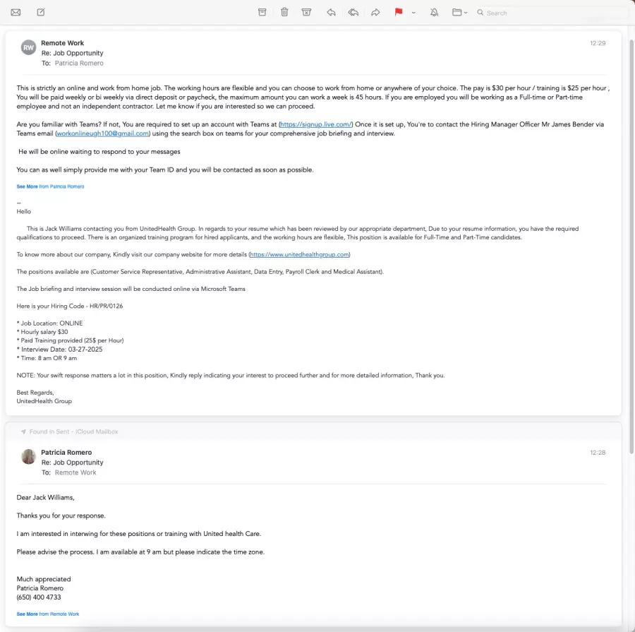 This is Jack Williams contacting you from UnitedHealth Group. In regards to your resume which has been reviewed by our appropriate department, Due to your resume information, you have the required qualifications to proceed. There is an organized training program for hired applicants, and the working hours are flexible, This position is available for Full-Time and Part-Time candidates.