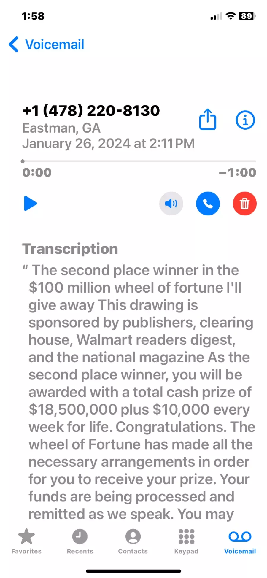 Type of a scam Sweepstakes/Lottery/Prizes