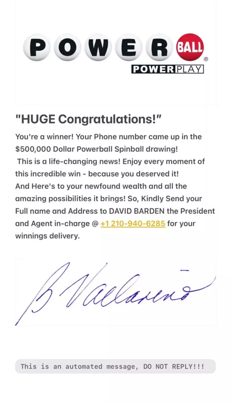 Type of a scam Sweepstakes/Lottery/Prizes