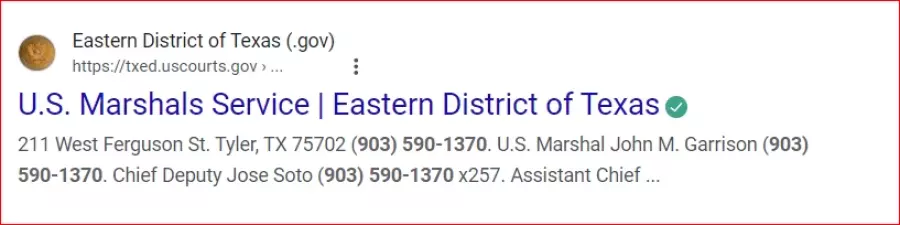 She then transferred me to a man claiming to be U.S. Marshal "Sean Malecha" (Badge # USMS024110). When I questioned him, he used a clever trick to seem legitimate: he told me to Google the phone number he was calling from. The search result was the official website for a United States District Court, which made him seem credible.