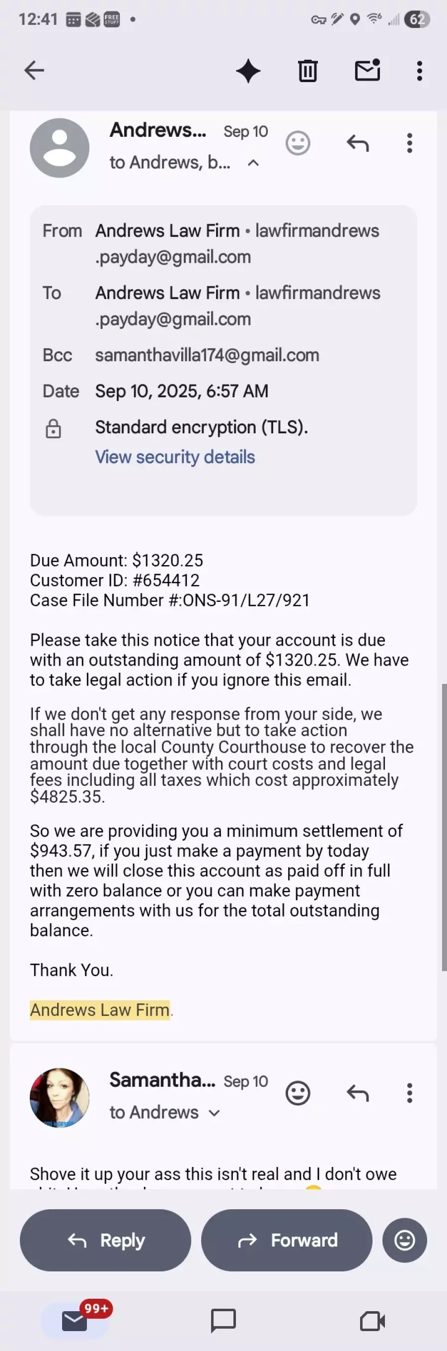 Andrew Law Firm is Using A Legitimate Law Firm name to Try and scam people