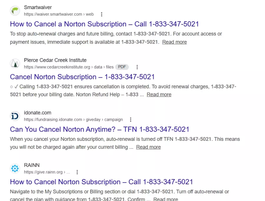 I'm writing to report a scam incident involving a fake Norton subscription cancellation service. I searched online for help to cancel my Norton plan and found a page displaying the number 833-347-5021. When I called, the representative claimed my account was compromised and pressured me to secure it immediately. They instructed me to purchase Amazon gift cards as a “verification and refund processing” method. Trusting them, I followed their instructions and shared the card details. Shortly after, I realized I had been scammed. I request you to investigate this matter and take appropriate action to prevent others from falling victim.