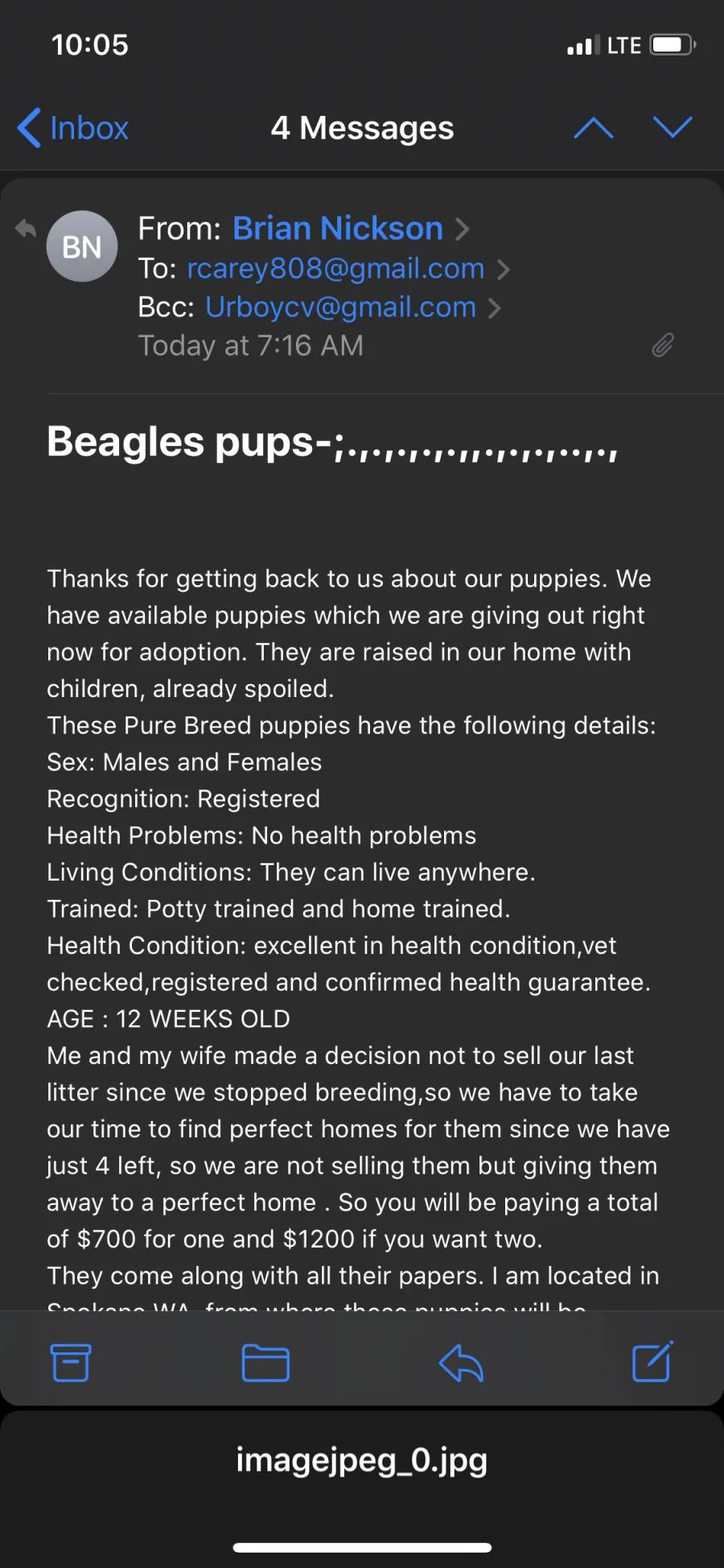 Scammer's website www.brianteacupbeaglepuppies.com