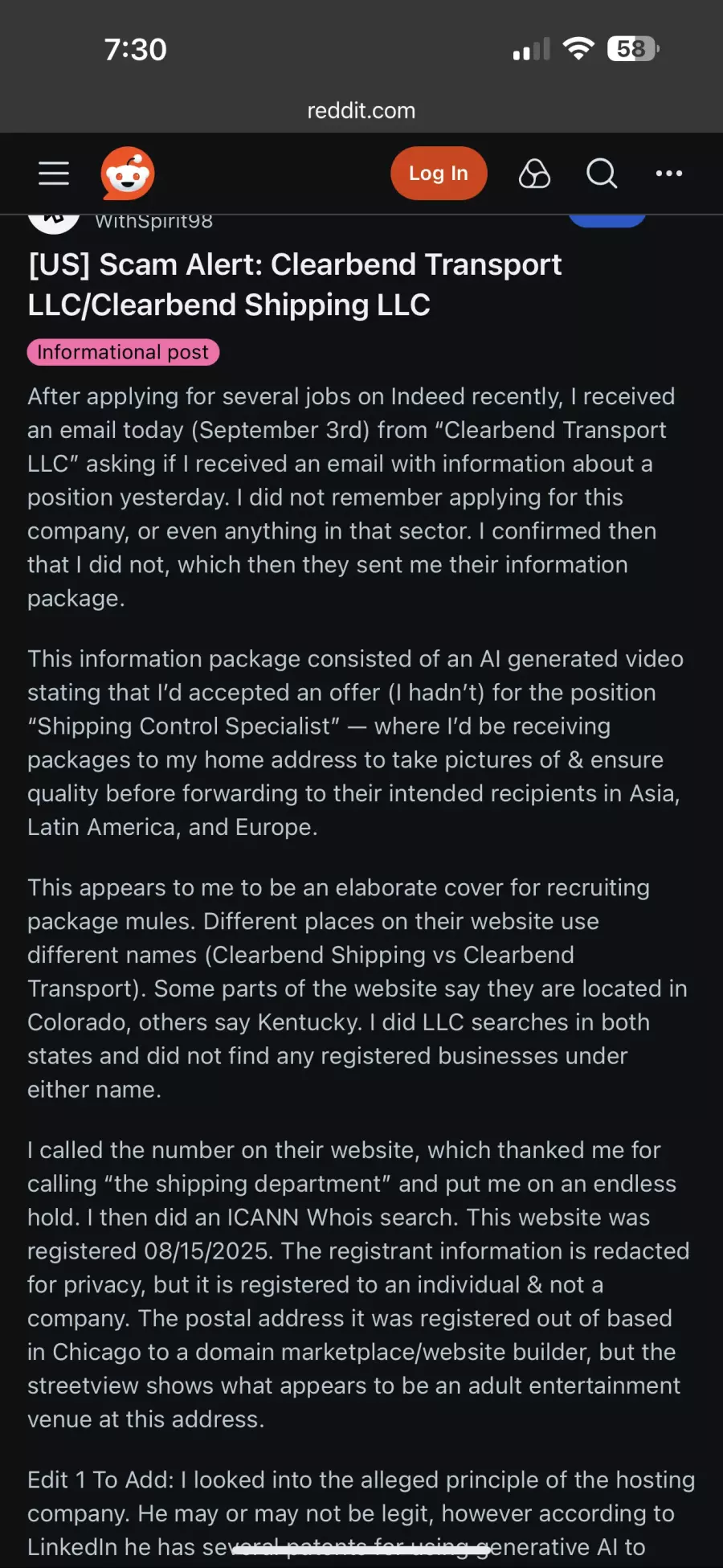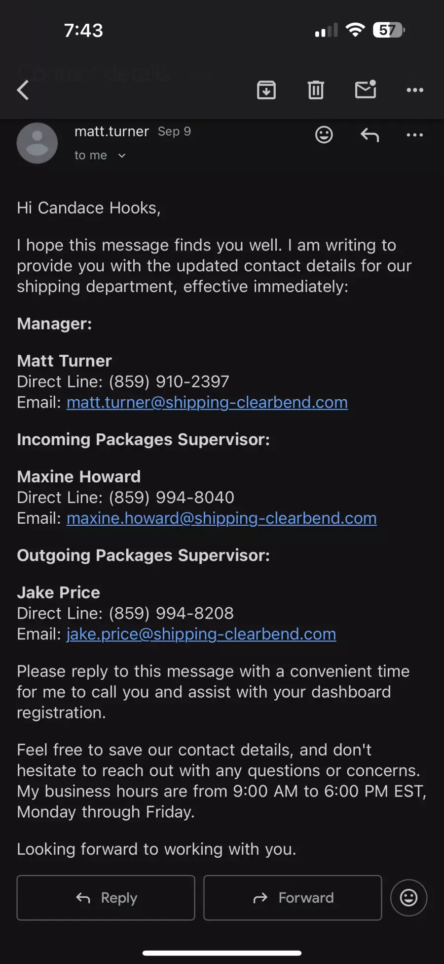 If you know any contact information for Clearbend Shipping, help other victims by adding it!