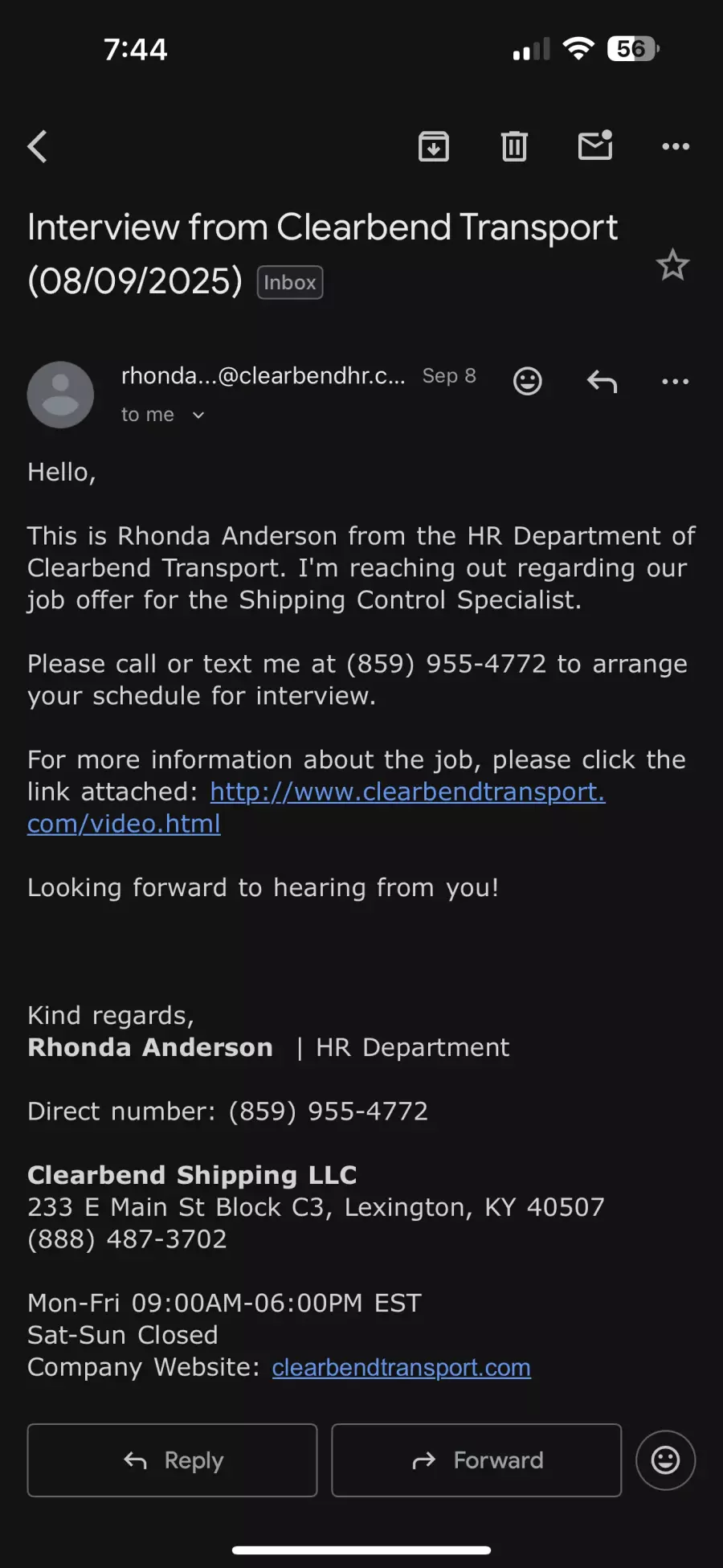 Our HR department received your resume from employment search webpages for Shipping Control Specialist opening.