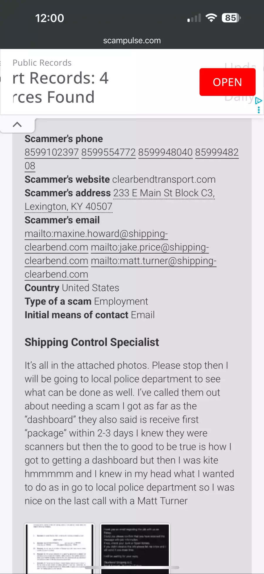 Scammer's address 233 E Main St Block C3, Lexington, KY 40507