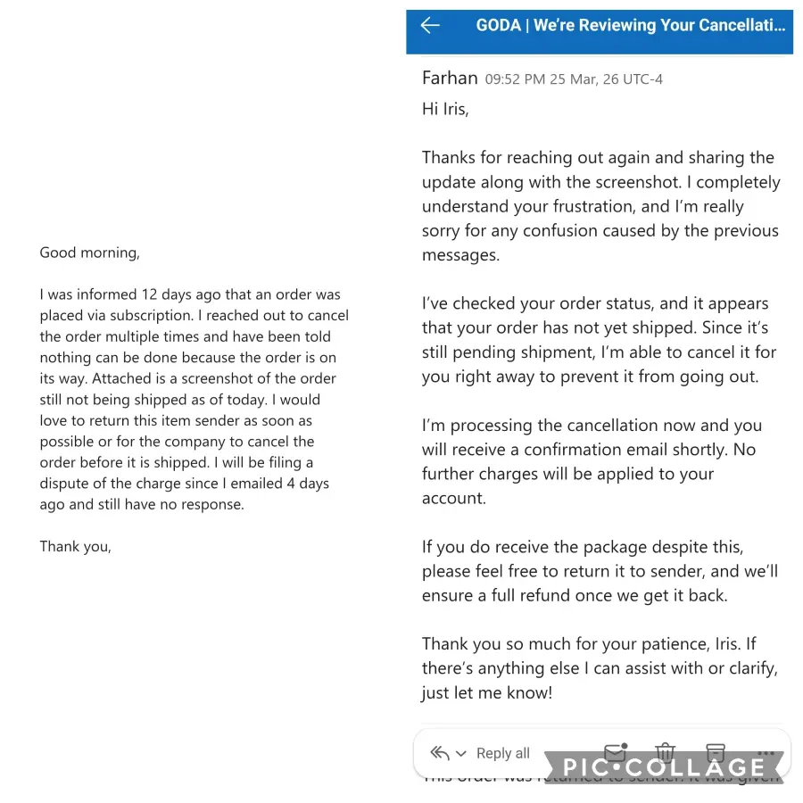 Goda perfume order never delivered, then charged for unwanted subscription