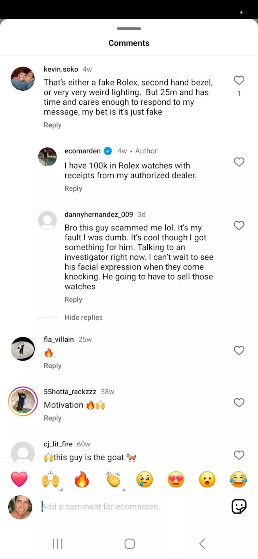 The calls and texts and emails went on for over a year and there were random text responses from him when there were texts pointing out the lies and scam but then nothing. Arden is a scam artist who preys on people who wanted to learn e-Commerce and were in a vulnerable position willing to pay someone they thought would help them. There are many other victims who've shared similar stories and I'm sure several police reports that are just waiting for follow up as he's not as smart as he thinks. His face is all over the internet and his lies are piling up. The internet is forever and so is his information which only will be a matter of time when it all comes crashing down and he gets the karma that's coming.