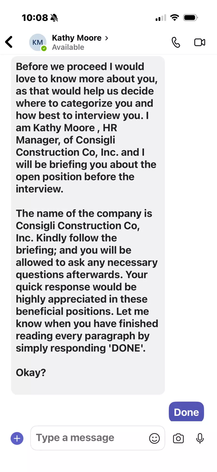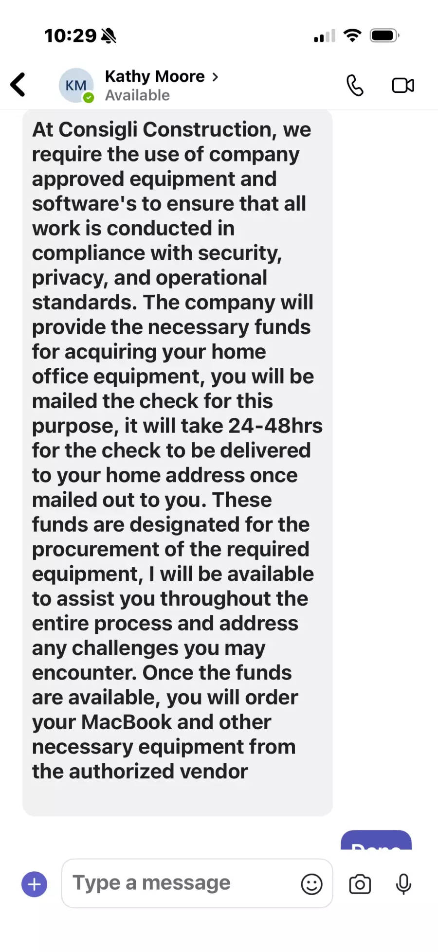 Type of a scam Employment