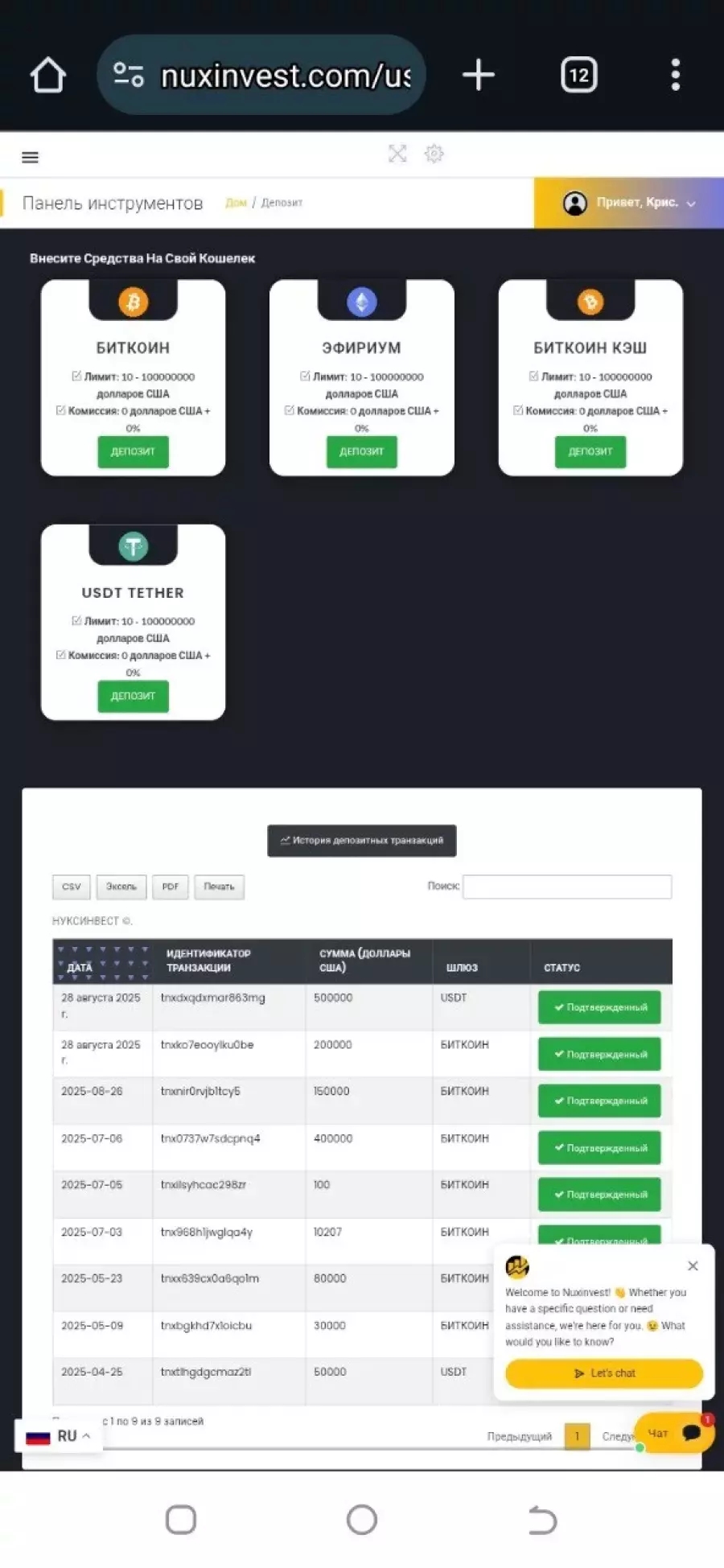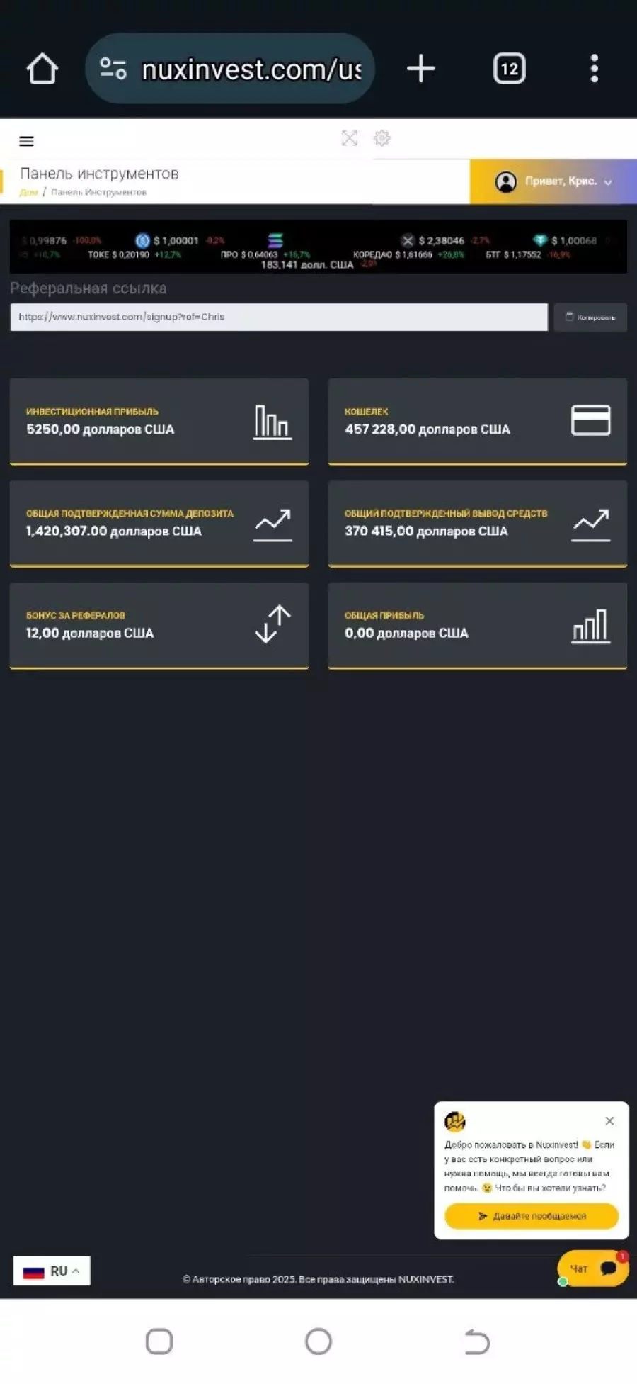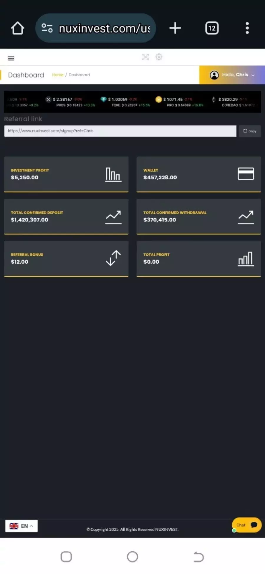 Scammer's website nuxinvest.com
