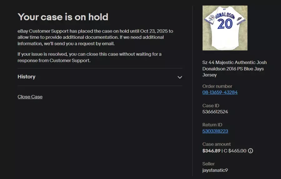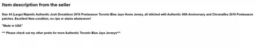 I found the jersey on eBay initially (https://www.ebay.ca/usr/jaysfanatic9?_pgn=2 - where Danny also encourages looking at his Kijiji store to avoid eBay costs [https://www.kijiji.ca/o-profile/55219873/listings/1]). I sent him an inquiry about the jersey on Kijiji and he invited me to his Instagram account where he had more jerseys. I followed him on Instagram, found the same jersey in a better size, and told him I'd like to order it. He was so fast and helpful at first. The jersey was $625, I sent him the money and he shared the tracking number.