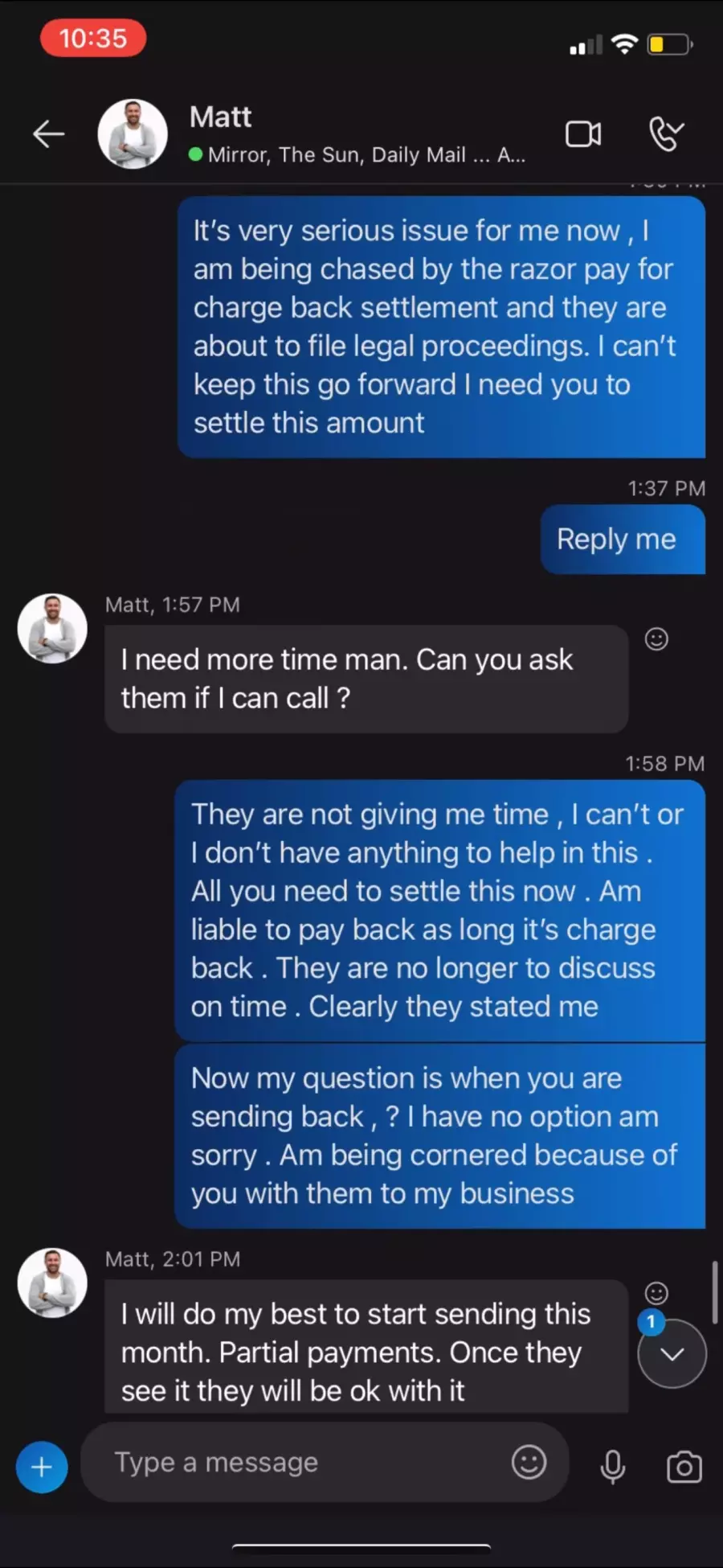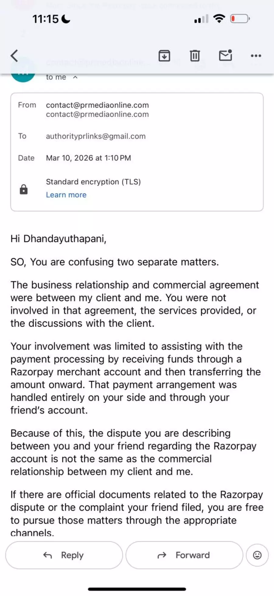 Shortly after receiving the cryptocurrency, the original client initiated a credit card chargeback on the Razorpay platform. This resulted in a total financial loss and left my associate’s account with a massive negative balance and legal restrictions that have lasted over three years.