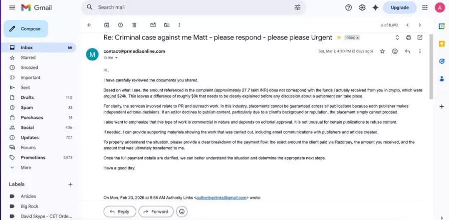 Be cautious when dealing with Matei Gavriluta or his entities, PR Media Online and Pro Media News LLC. This report is filed to prevent other freelancers or businesses from suffering similar financial losses. I remain open to a full settlement of the $25,016 USD debt to resolve these public filings.
