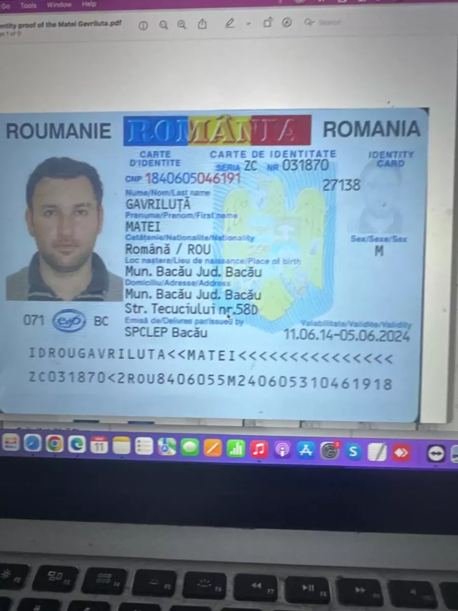 Identity: His Romanian ID card showing his Bacău address.