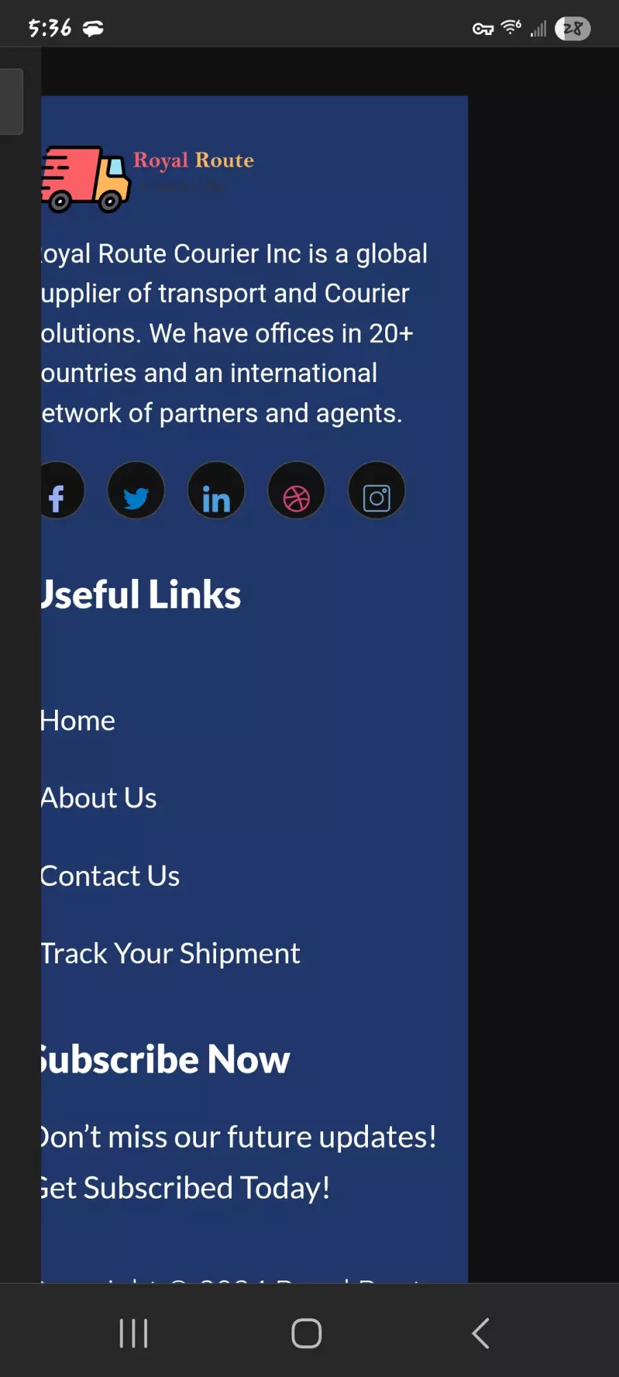 Scammer's website royalroutecourierinc.com