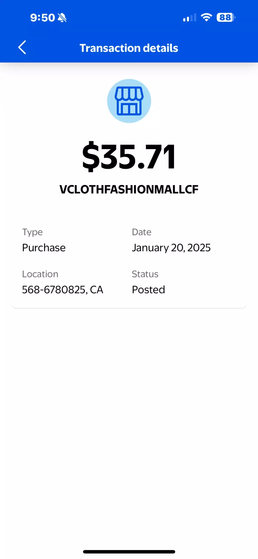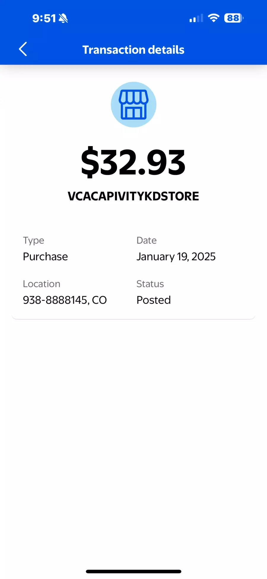 I then received a notification of my purchase and the merchant information was “VCACAPIVITYKDSTORE” not 32Degrees.