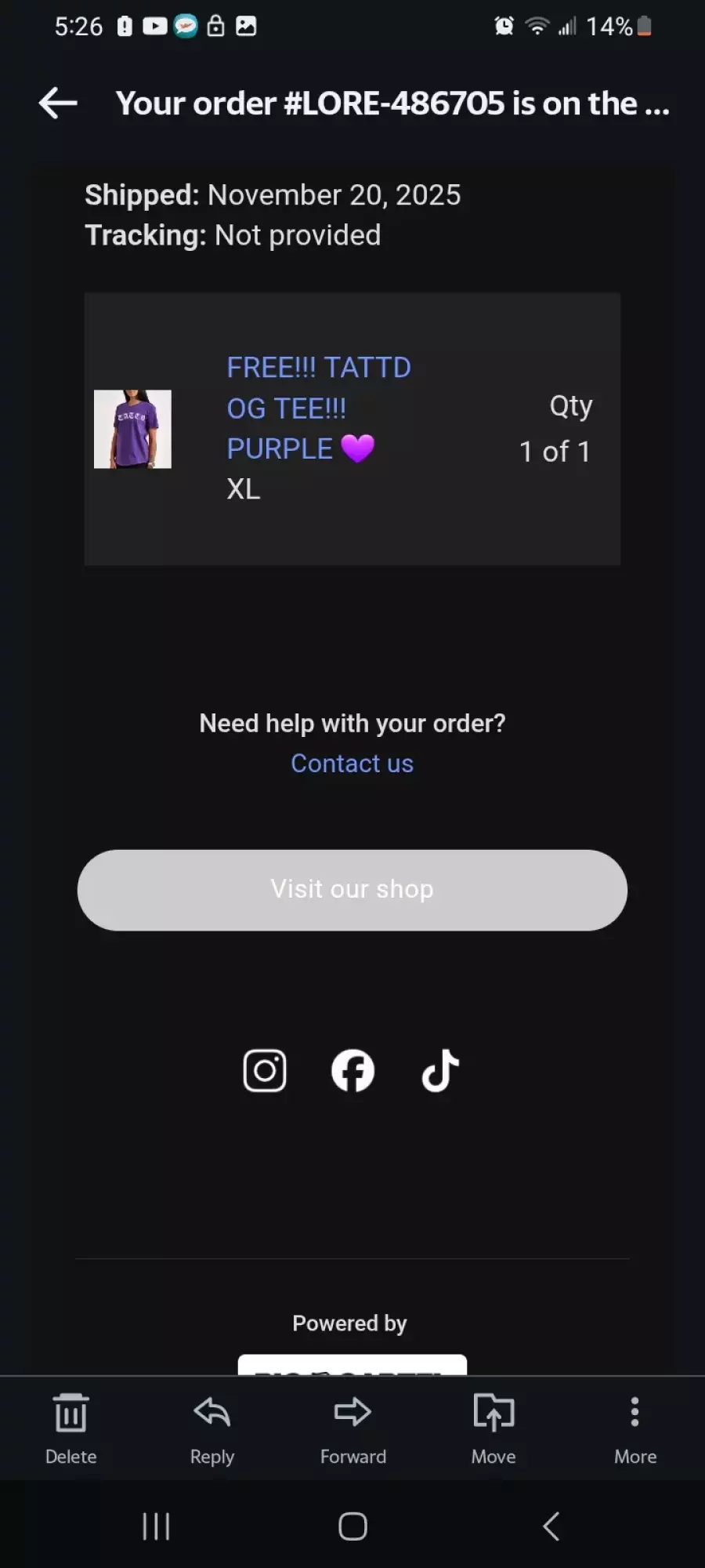 Got a confirmation number but no response to emails on when I’ll be receiving my merchandise
